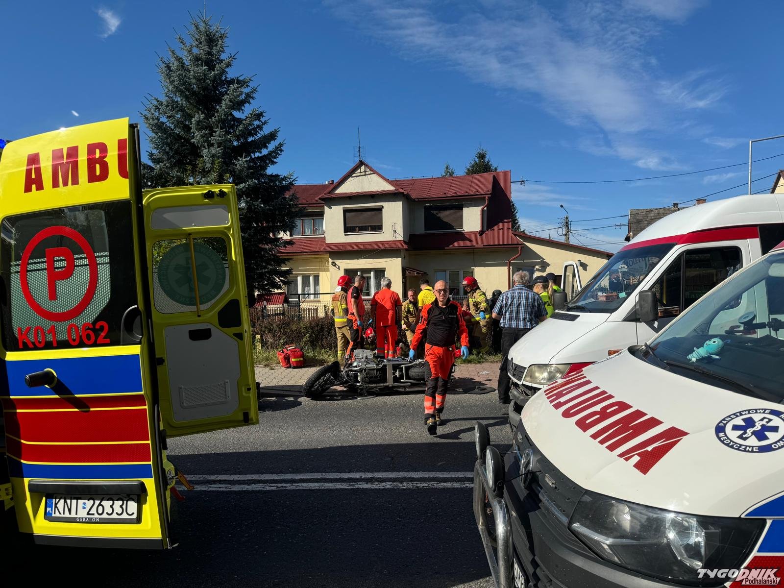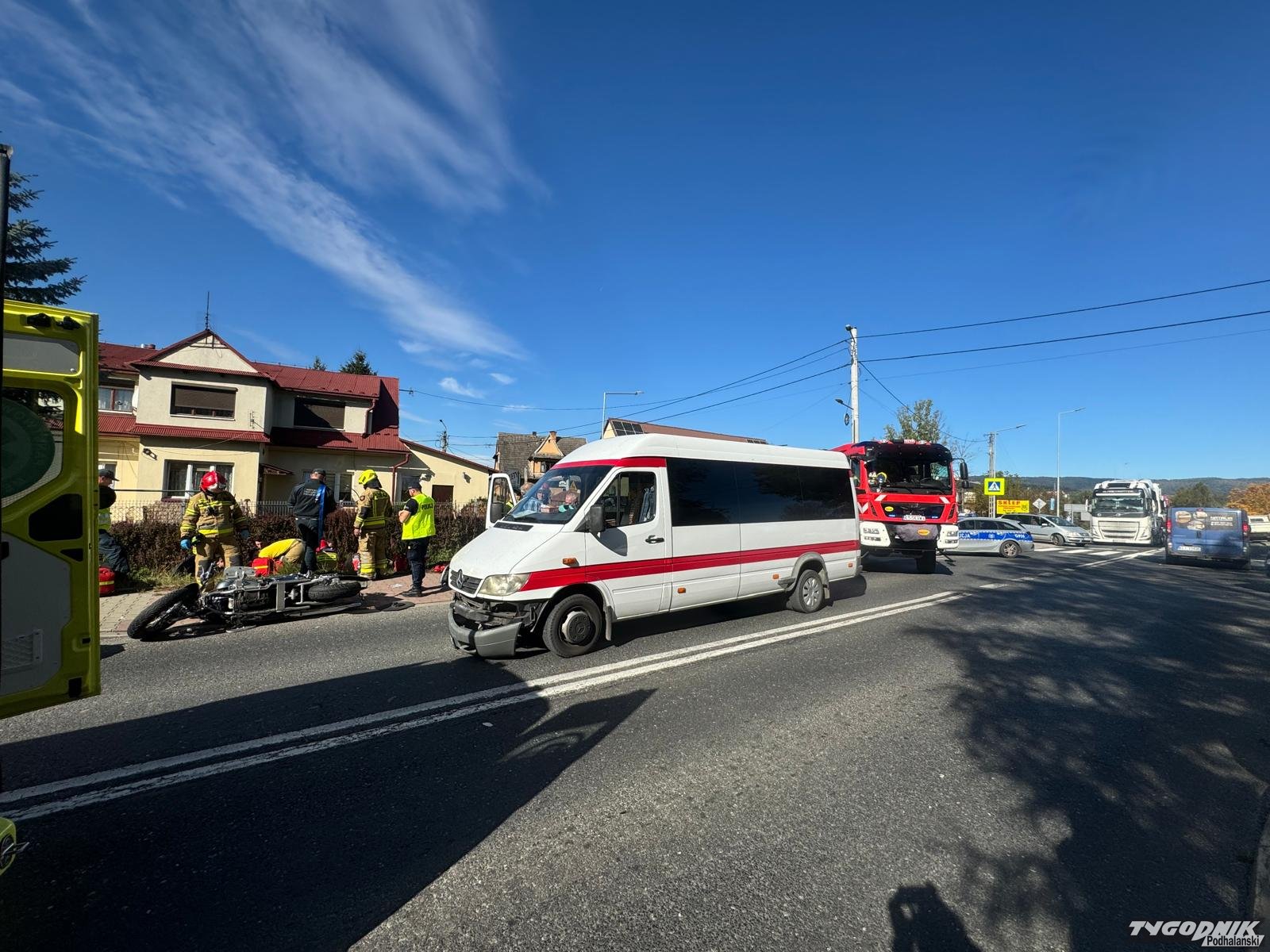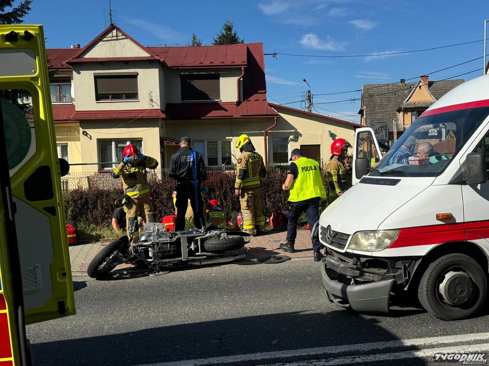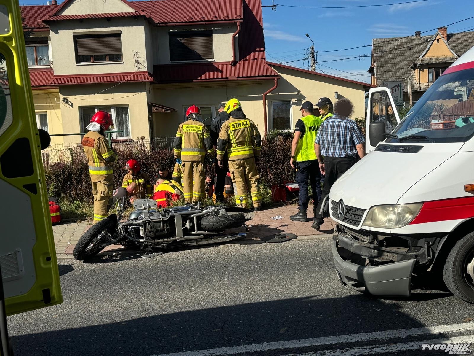 Wypadek zdarzył się na krajowej siódemce w rejonie skrzyżowania chyżnianki i drogi łączącej Chabówkę ze Skawą. Na motocyklu podróżowały dwie osoby. Z relacji świadków wynika, że motocykl jechał główną drogą a kursowy bus włączał się do ruchu z drogi podporządkowanej.