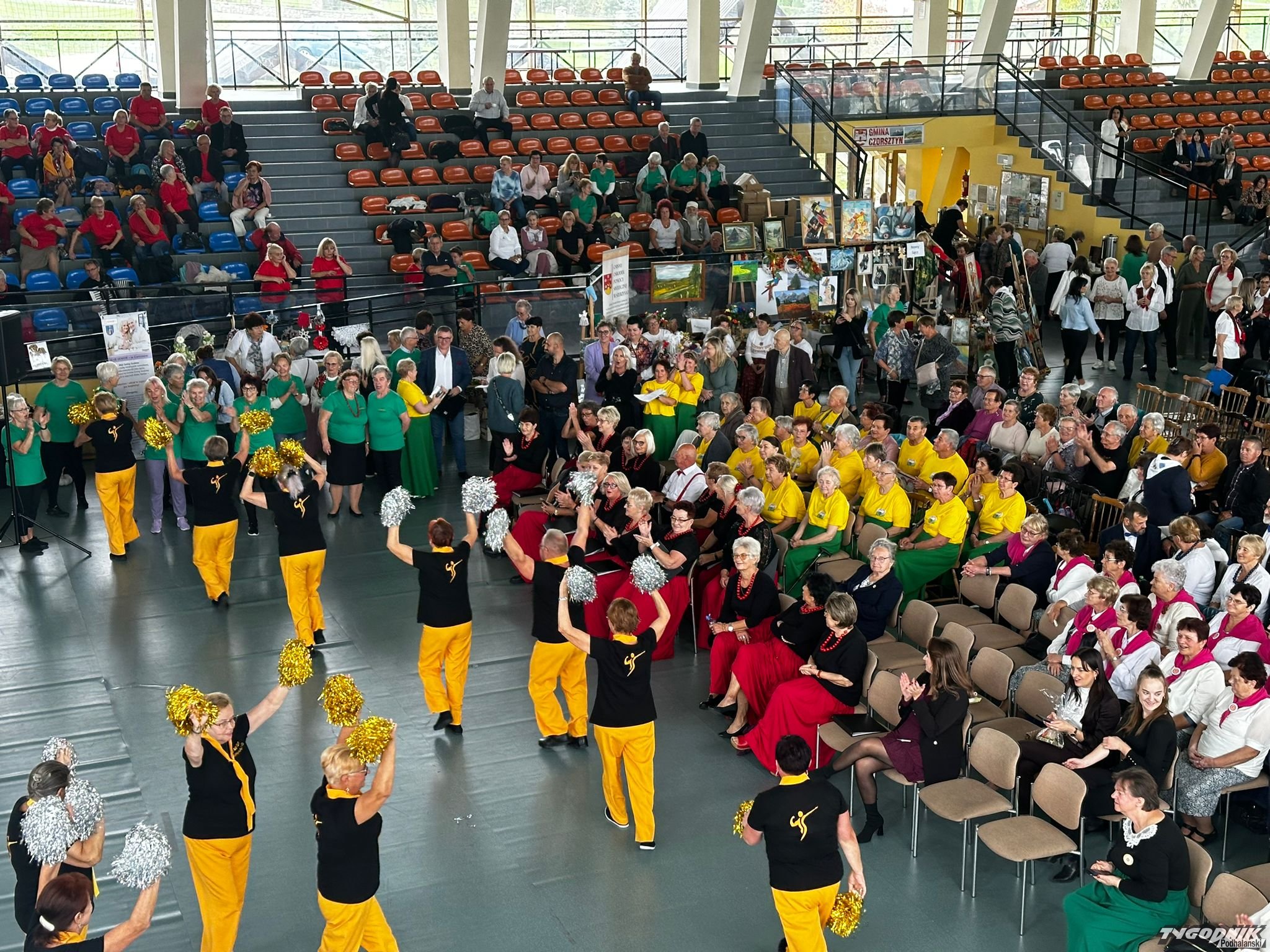 Halę Sportową w Maniowach wypełniło ponad 450 seniorów, którzy działają m. in. w klubach senioralnych. - Było pięknie, kolorowo a hala zadrżała od dobrych, pozytywnych wibracji - relacjonuje Aneta Markus, wójcina Gminy Czorsztyn. - Nasi goście udowodnili, że niezależnie od wieku można i warto być aktywnym - dodaje.