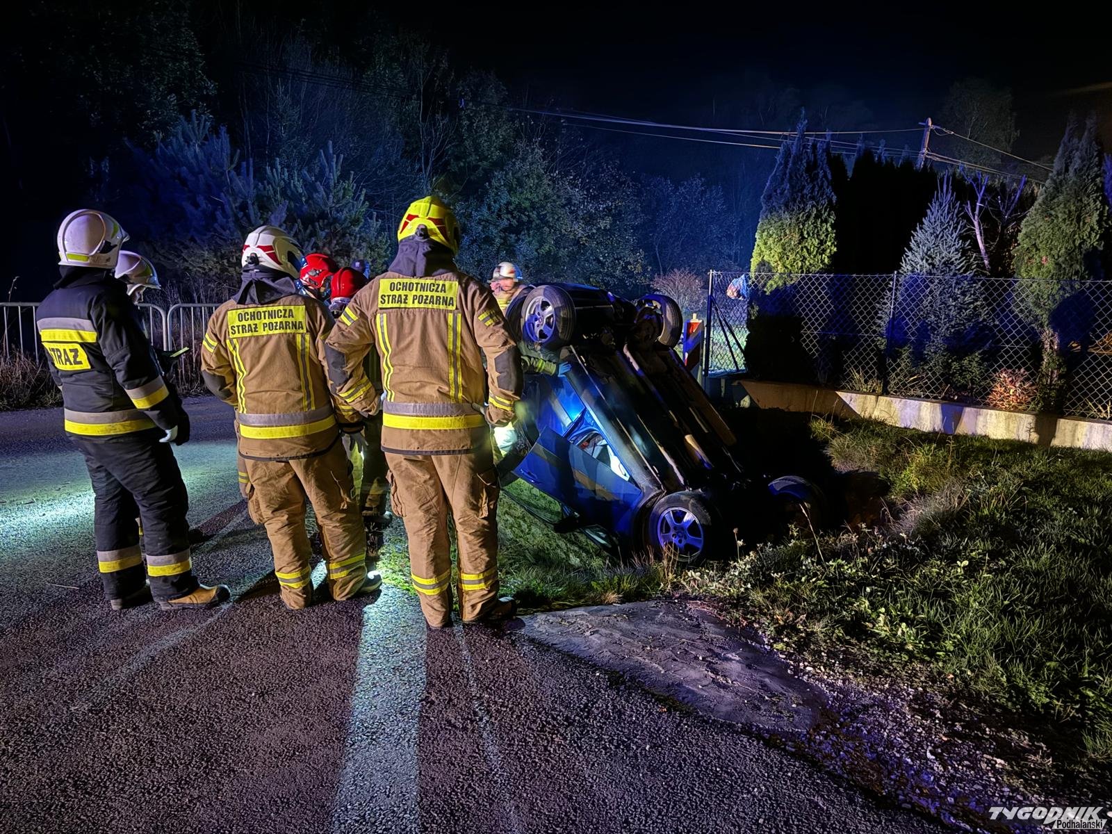 Do wypadku doszło na drodze osiedlowej w Skawie. Kierująca osobowym autem kobieta straciła panowanie nad pojazdem. Samochód wywrócił się na dach. Kierująca o własnych siłach opuściła samochód. Na szczęście nie odniosła poważniejszych obrażeń. Na miejscu pracują strażacy z OSP Skawa a także z Rabczańskiej Jednostki Ratowniczo - Gaśniczej. Jest też patrol policji.