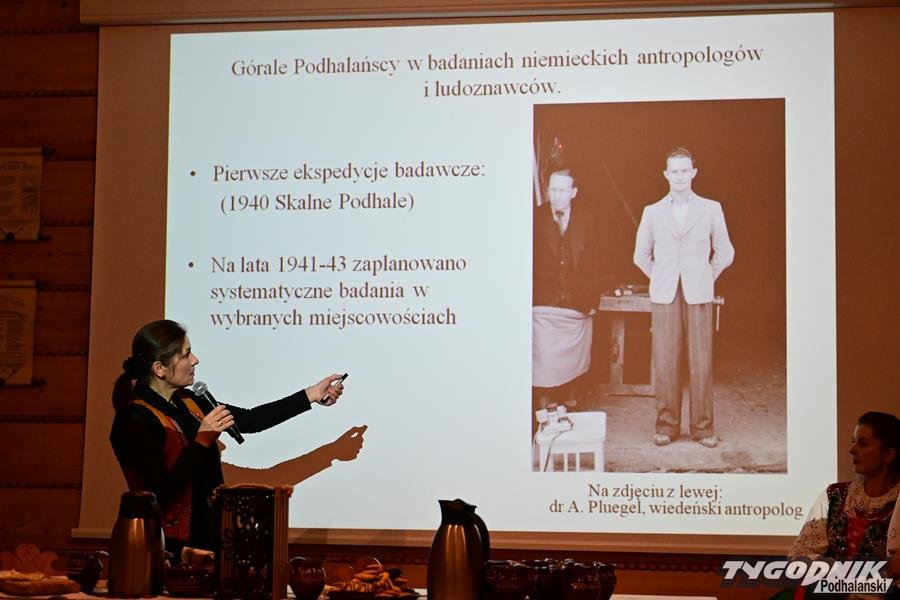 O szczegółach tych długo nieujawnionych działań niemieckiego okupanta względem podhalańskiej ludności, a zwłaszcza względem mieszkańców Szaflar, w piątek 29 listopada opowiedziała członkom i sympatykom Związku Podhalan oddział w Nowym Targu dr hab. Stanisława Trebunia-Staszel. Spotkanie odbyło się w izbie regionalnej Miejskiego Centrum Kultury w Nowym Targu i dostarczyło słuchaczom wielu skrajnych emocji. - Zastanawialiśmy się z prezesem Wojciechem Groniem, jaki temat poruszyć na tych posiadach - stroju, obrzędów, a może dziedzictwa Karpat, jednak dygresja ciążyła nam w stronę mojego projektu badawczego z lat 2014-2016, dotyczącego niemieckiego Institut für Deutsche Ostarbeit, czyli jednostki prowadzącej badania rasowe i antropologiczne w wybranych miejscowościach Generalnej Guberni, zwłaszcza Podhala - przybliżyła etymologię tematu dr hab. Stanisława Trebunia-Staszel.