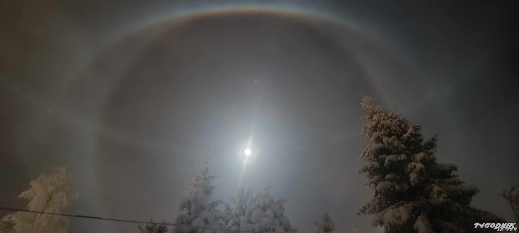 Księżycowe halo nad Bukowiną i Groniem