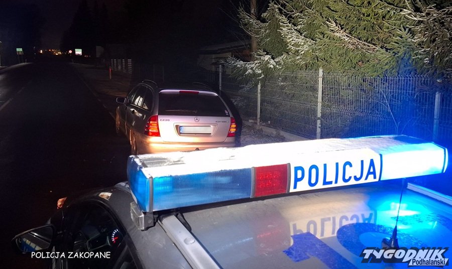 Dziś w nocy w Poroninie policja zatrzymała pijanego kierowcę mercedesa, który poruszał się po drodze slalomem.