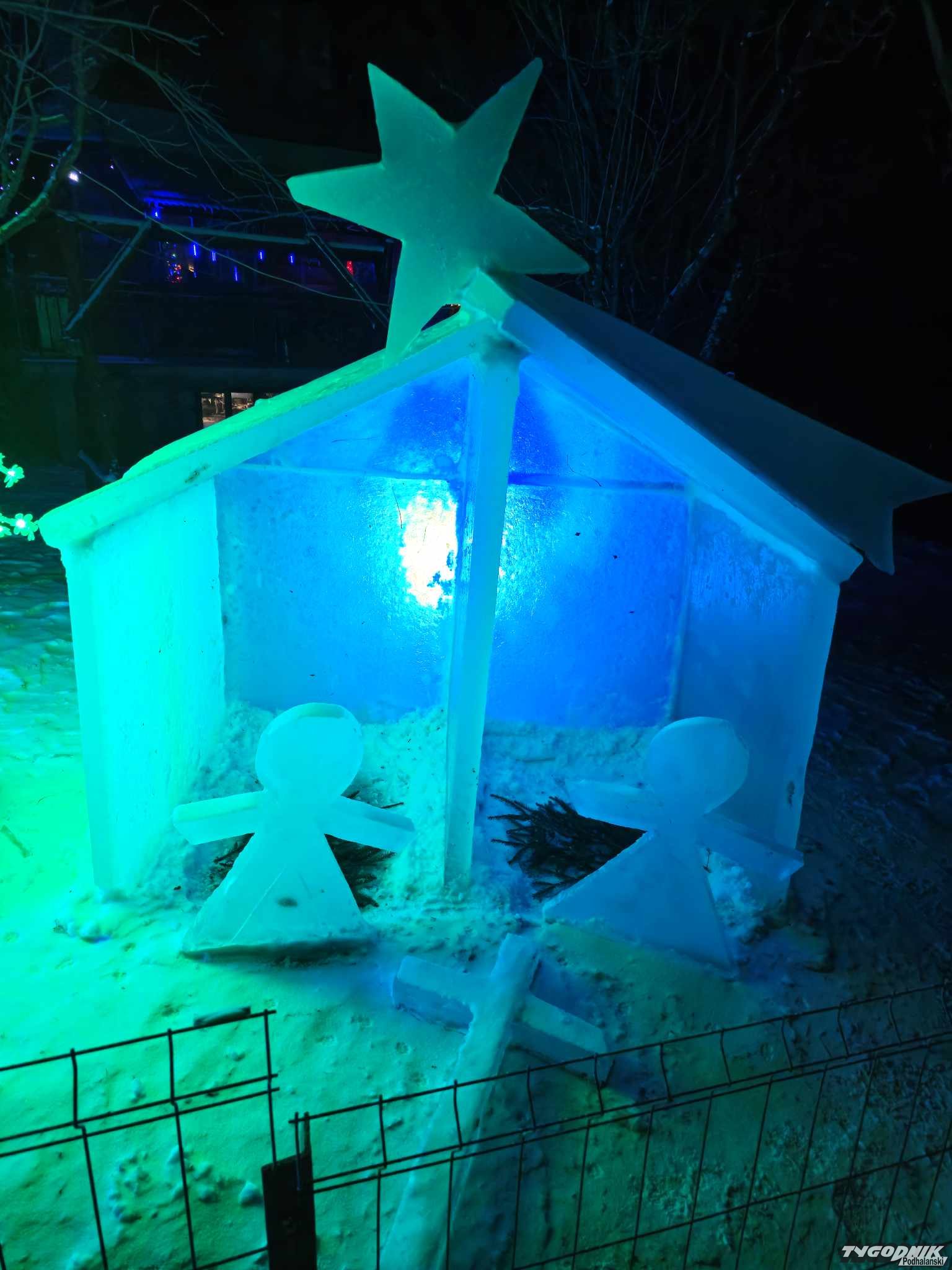 Świąteczna stajenka z lodu