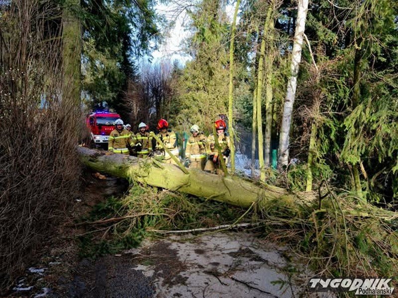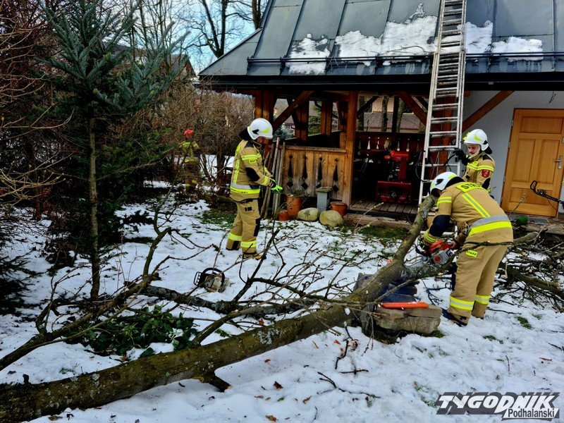 Halny w natarciu, powalone drzewa spadają na drogi, domy i linie telefoniczne