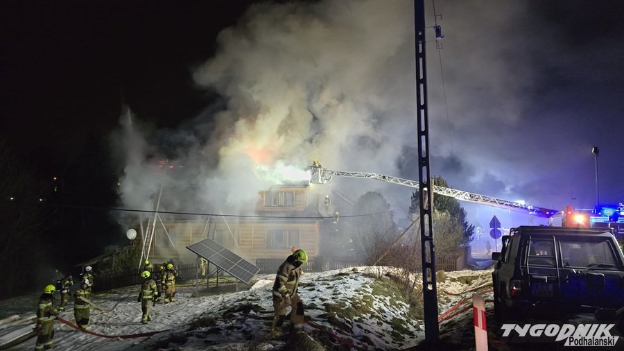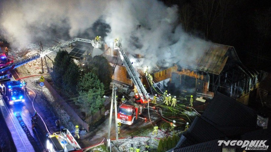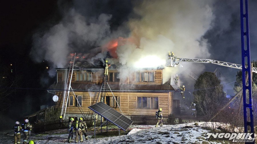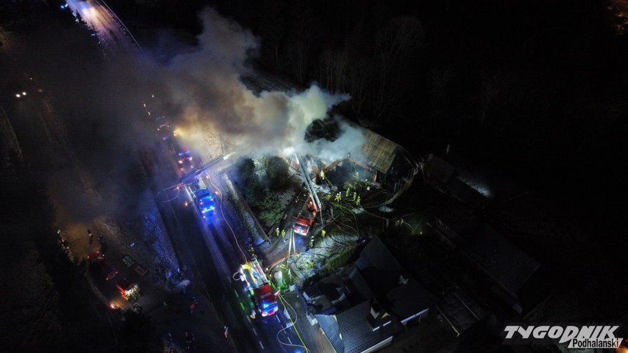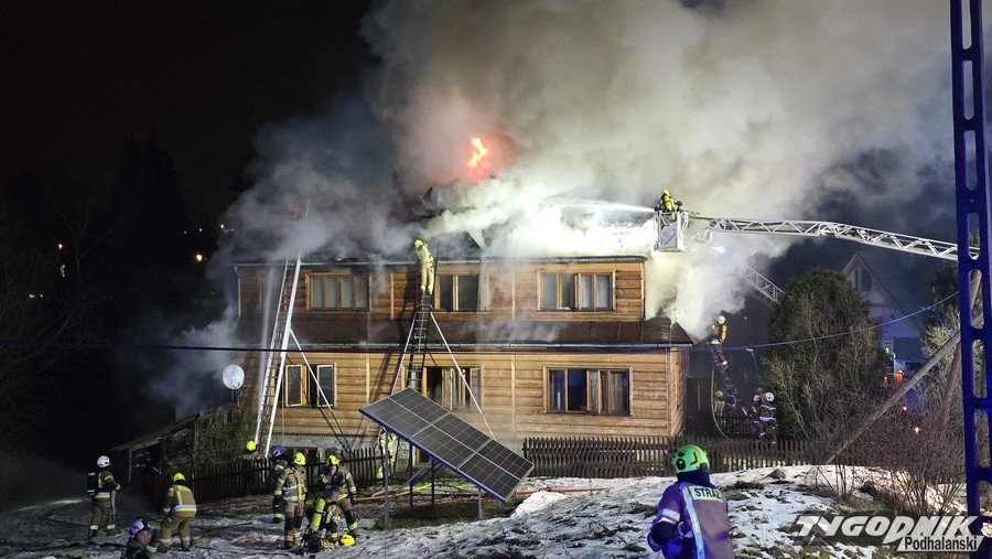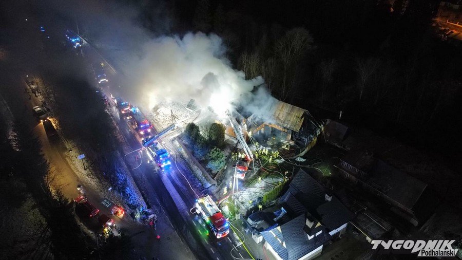Groźny pożar w Bukowinie Tatrzańskiej, jedna osoba poszkodowana, z ogniem walczy 16 jednostek (WIDEO)