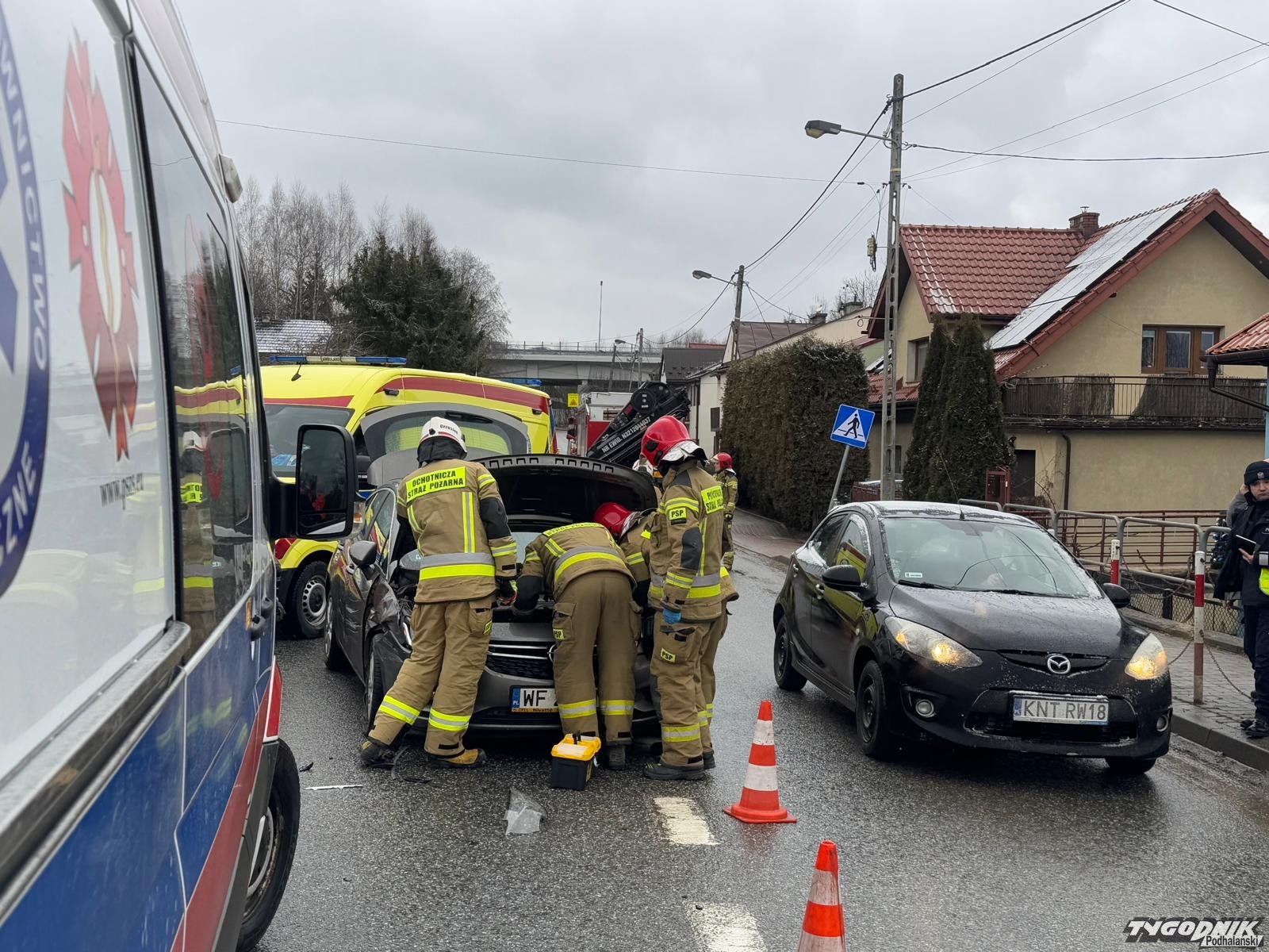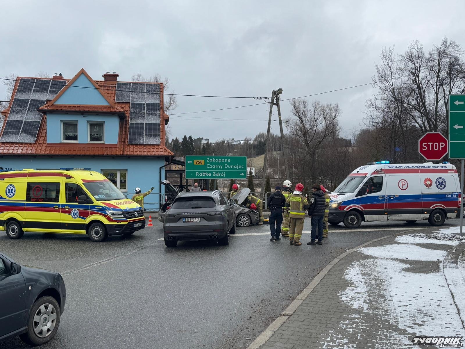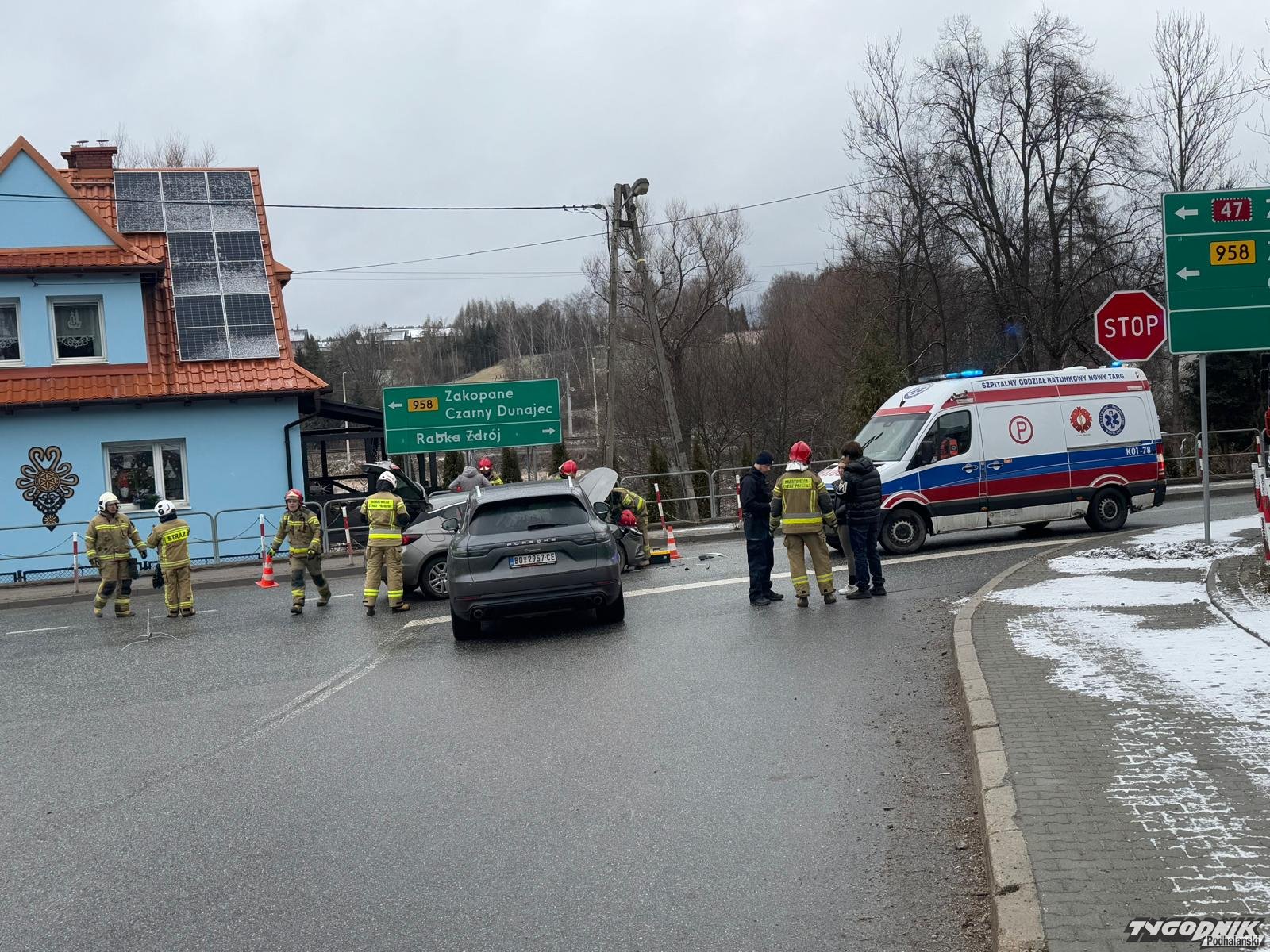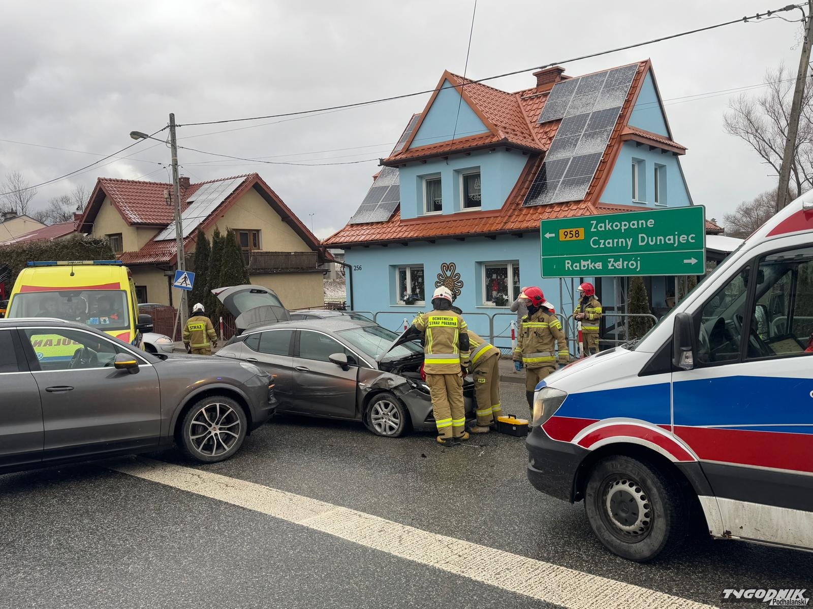 Wypadek zdarzył się po jedenastej na skrzyżowaniu drogi wojewódzkiej i zjazdu z zakopianki. W kolizji uczestniczą dwie osobówki. Na miejscu pracują strażacy, są też dwa zespoły pogotowia ratunkowego i policjanci rabczańskiego komisriatu, którzy ustalają okoliczności wypadku.