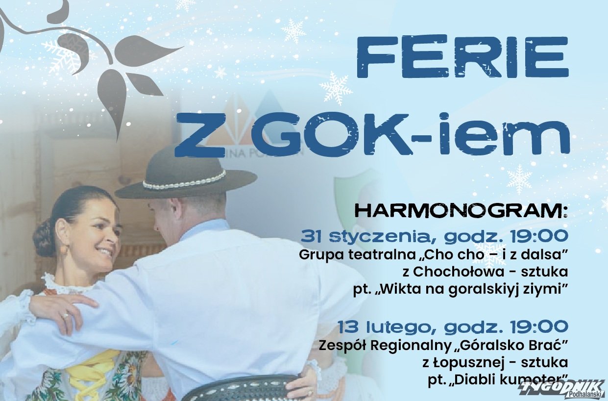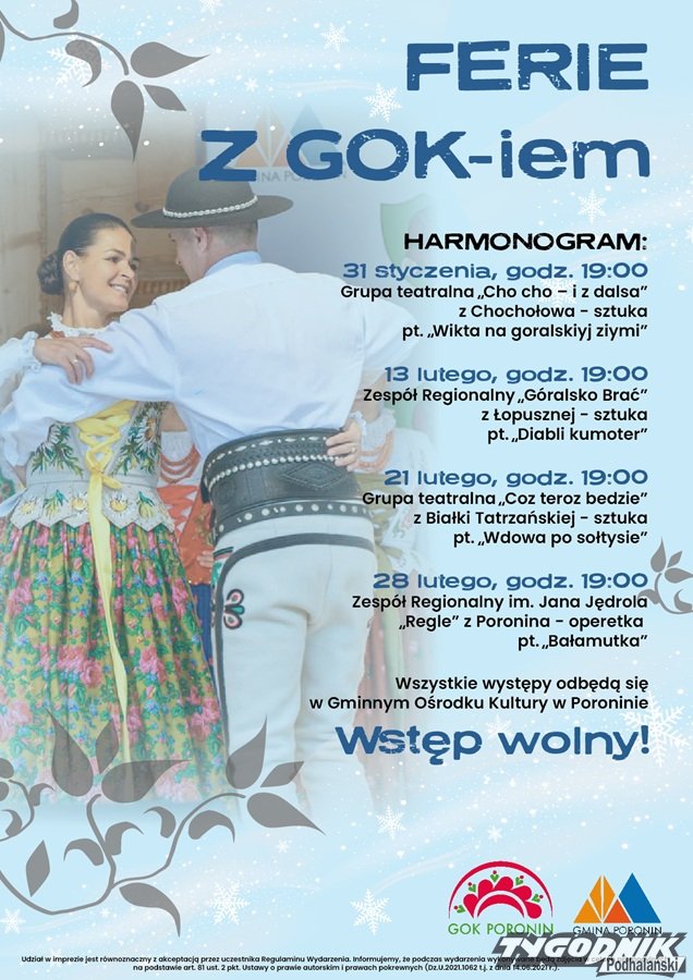 Jak informuje tutejszy Gminny Ośrodek Kultury, ferie w Poroninie upłyną pod znakiem sztuki i operetki, oczywiście w góralskich klimatach.