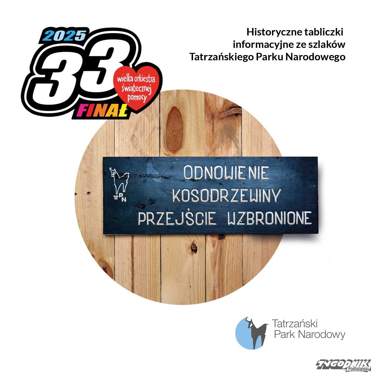 Tabliczki informacyjne z tatrzańskich szlaków na licytacjach dla WOŚP