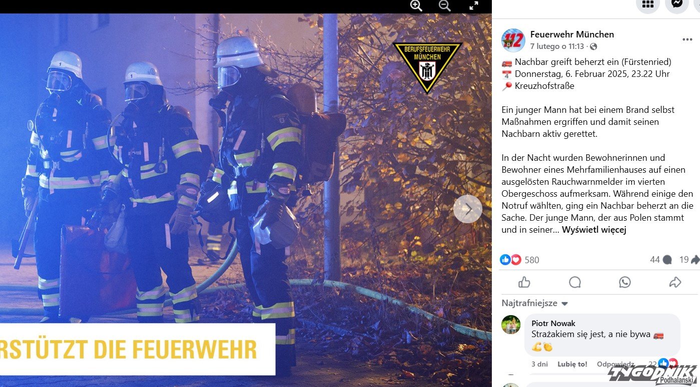 Maciek Biernat uratował z pożaru 70-latka. Monachijska straż pożarna zaprasza go w swoje szeregi.