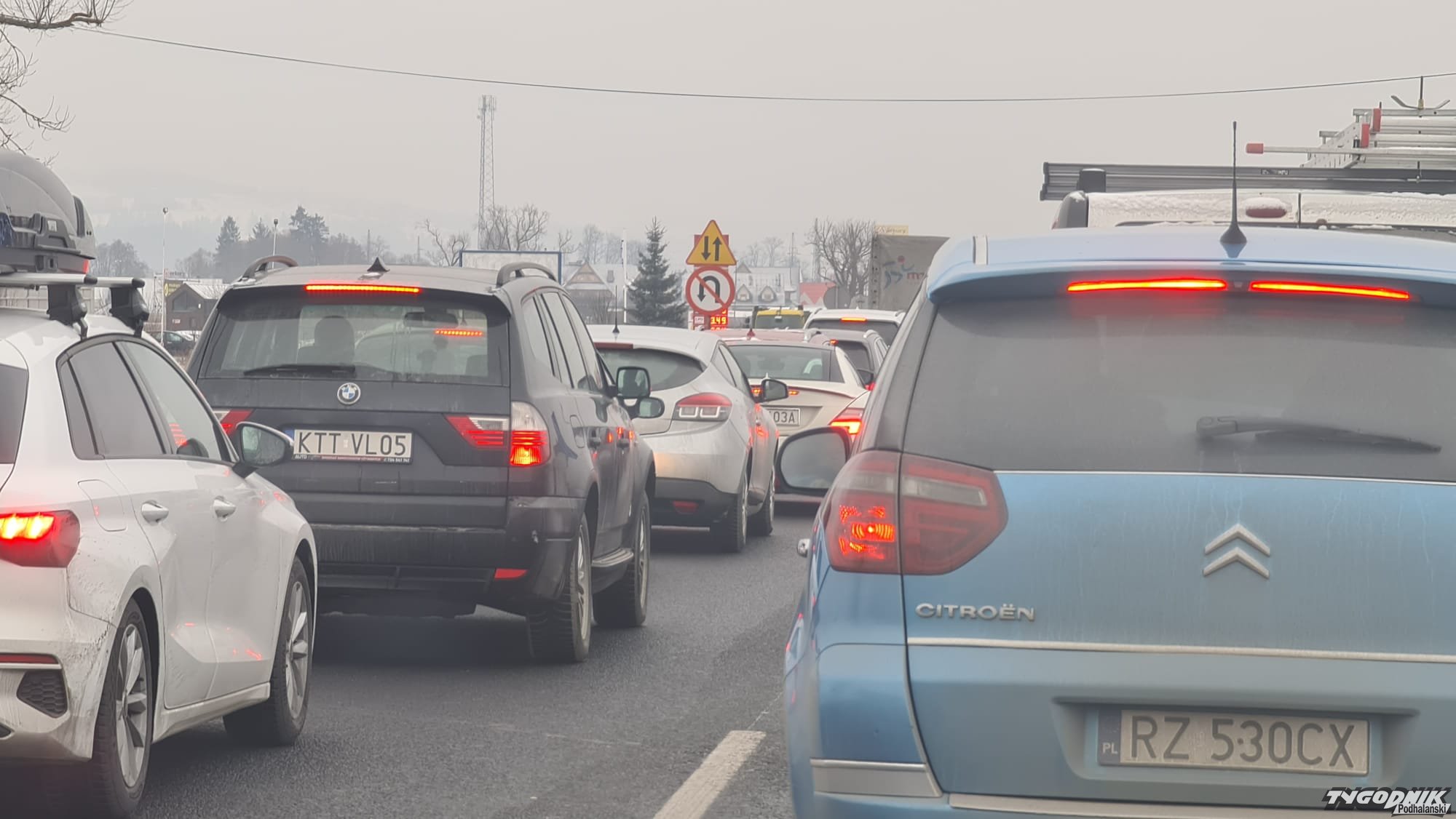 Wielki korek między Szaflarami a Nowym Targiem