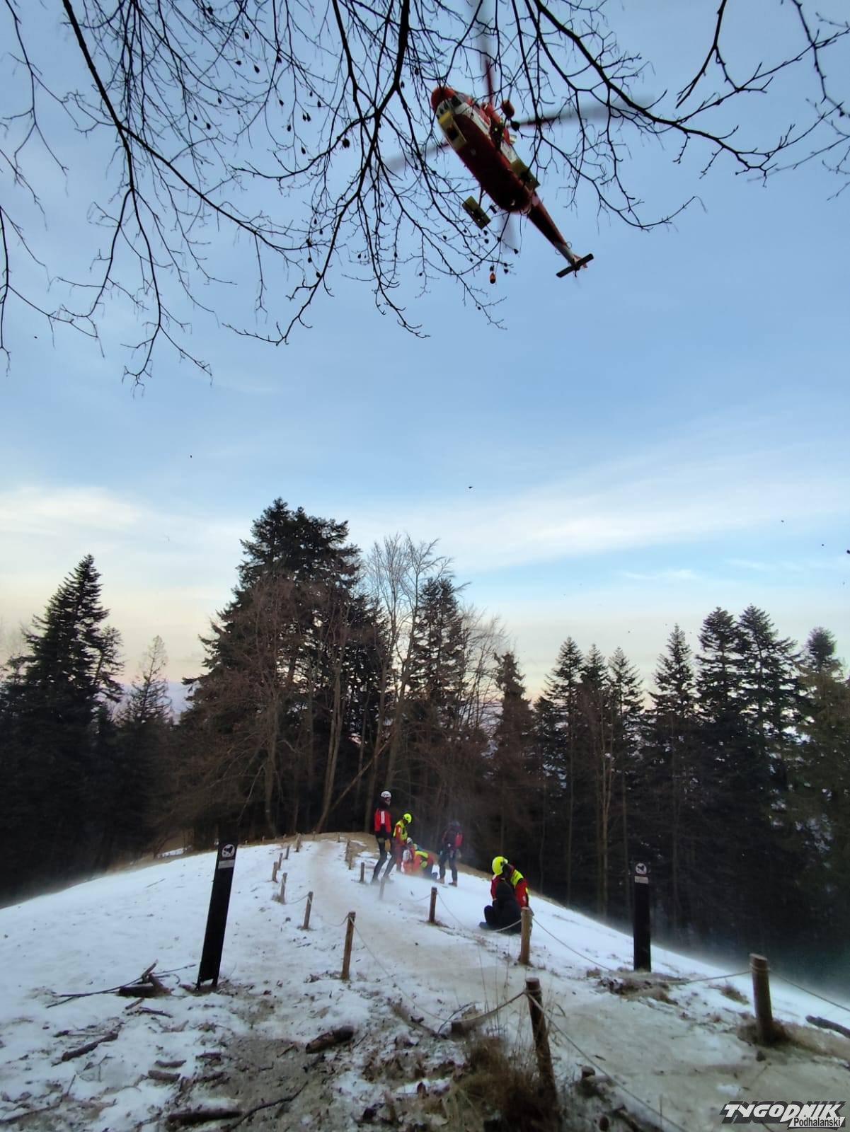 Ratownicy TOPR śmigłowcem zabrali turystę z urazem nogi do szpitala.