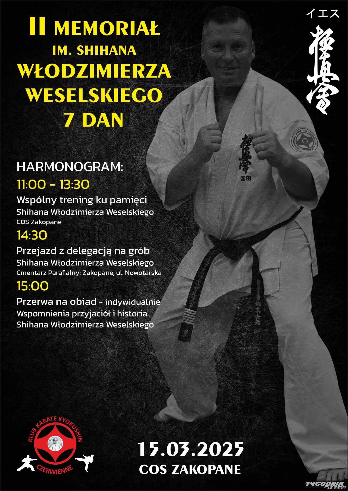 W sobotę 15 marca w Centralnym Ośrodku Sportu w Zakopanem odbędzie się drugi memoriał dla uczczenia pamięci zmarłego 18 marca 2023 roku Włodzimiera Weselskiego - osoby związanej ze sportem, a przede wszystkim z karate kyokushinkai.