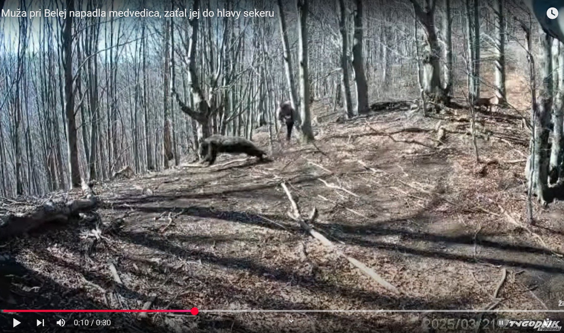 Wszystko nagrała kamera z fotopułapki. Jak podaje słowacki portal https://www.zilinak.sk w piątek pan Piotr spacerował z psem szlakiem w Małej Fatrze. Ok. 30 metrów przed sobą zobaczył niedźwiedzicę z czterema młodymi. Jak mówi, często spotykał niedźwiedzie, więc zachował spokój i postanowił zagwizdać informując o swojej obecności. Niedźwiedzica podbiegła do niego. Użył gazu, który miał przy sobie, ale to nie pomogło. Schował się za drzewo, a niedźwiedzica ponowiła ataki. Mężczyzna bronił się siekierą uderzając zwierzę w głowę. Jak mówi, gdyby nie miał przy sobie siekiery mógłby nie przeżyć. Twierdzi, że nosi ją, aby oczyścić szlaki z powalonych gałęzi.
