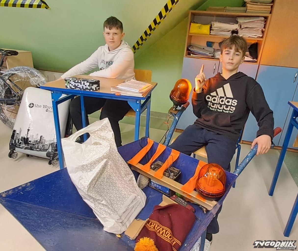 Uczniowie ze Szkoły Podstawowej nr 1 im. Bohaterów Westerplatte w Cichem są niesamowicie kreatywni. Zamiast zapakować książki do tornistra, umieścili je w taczkach, oponach, zabawkach, kocach...