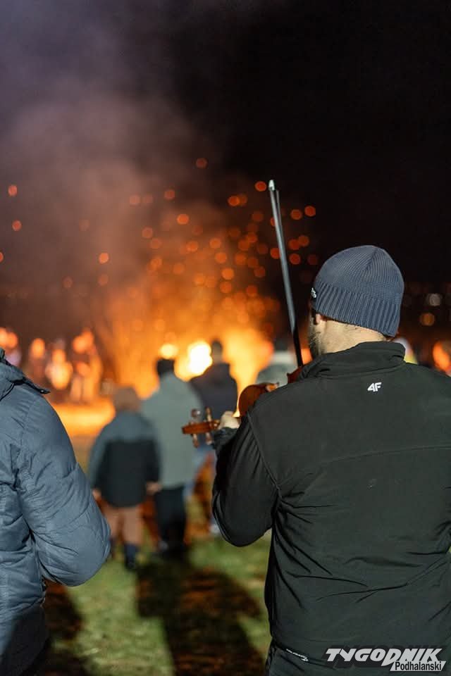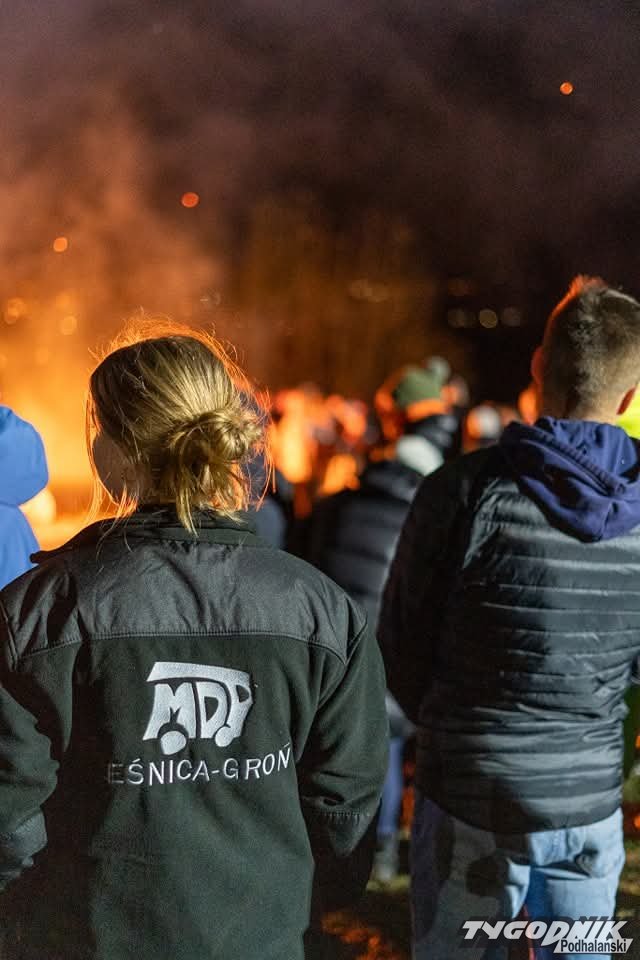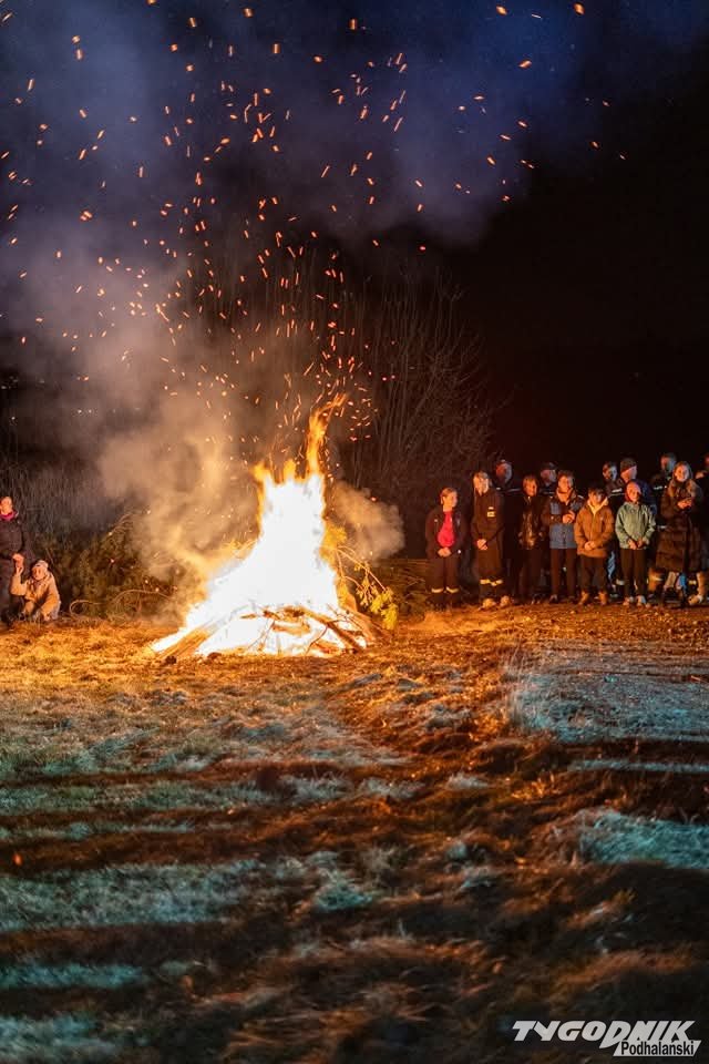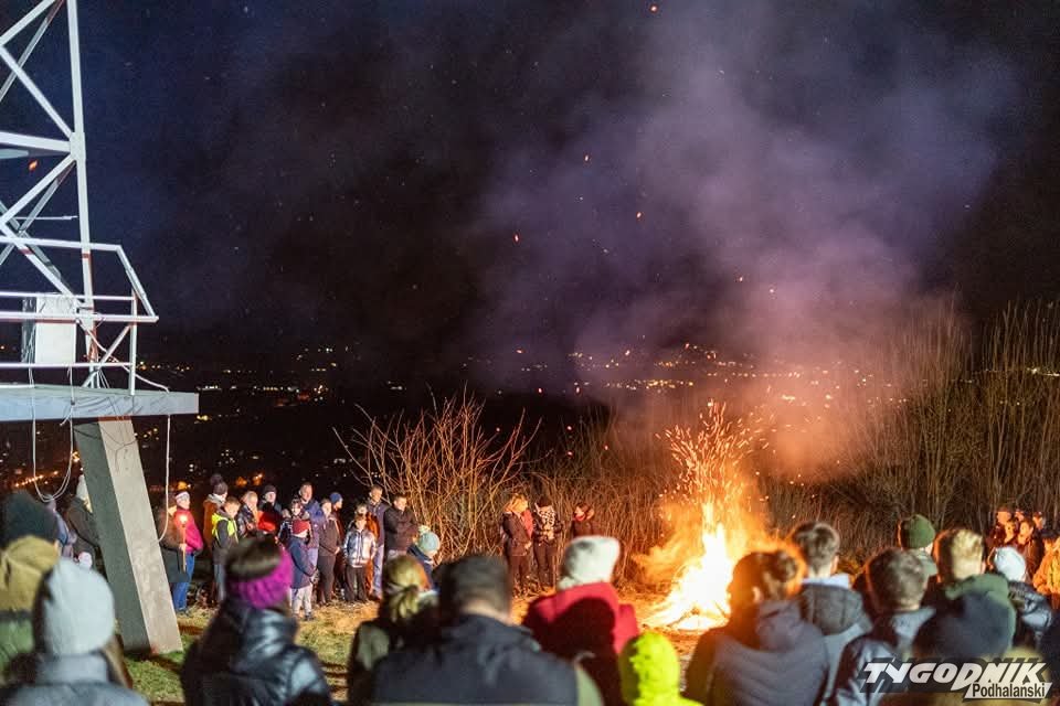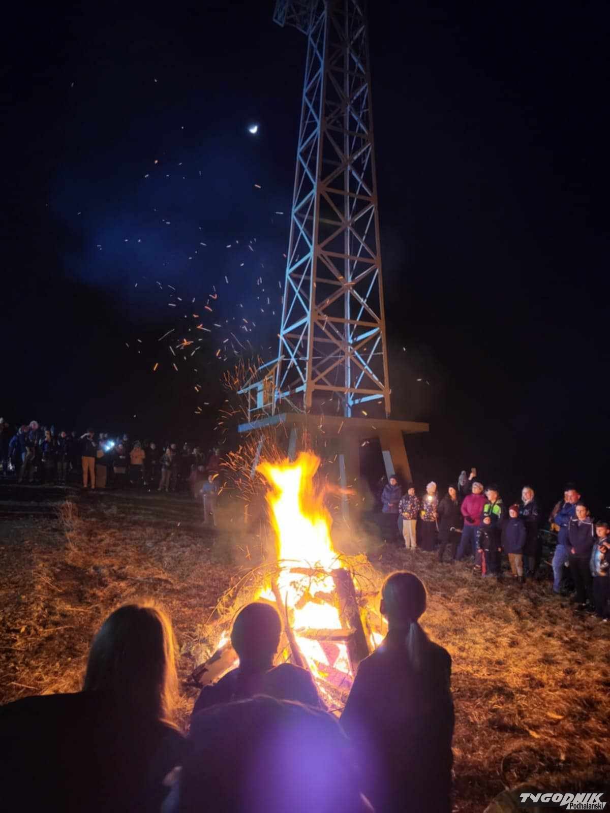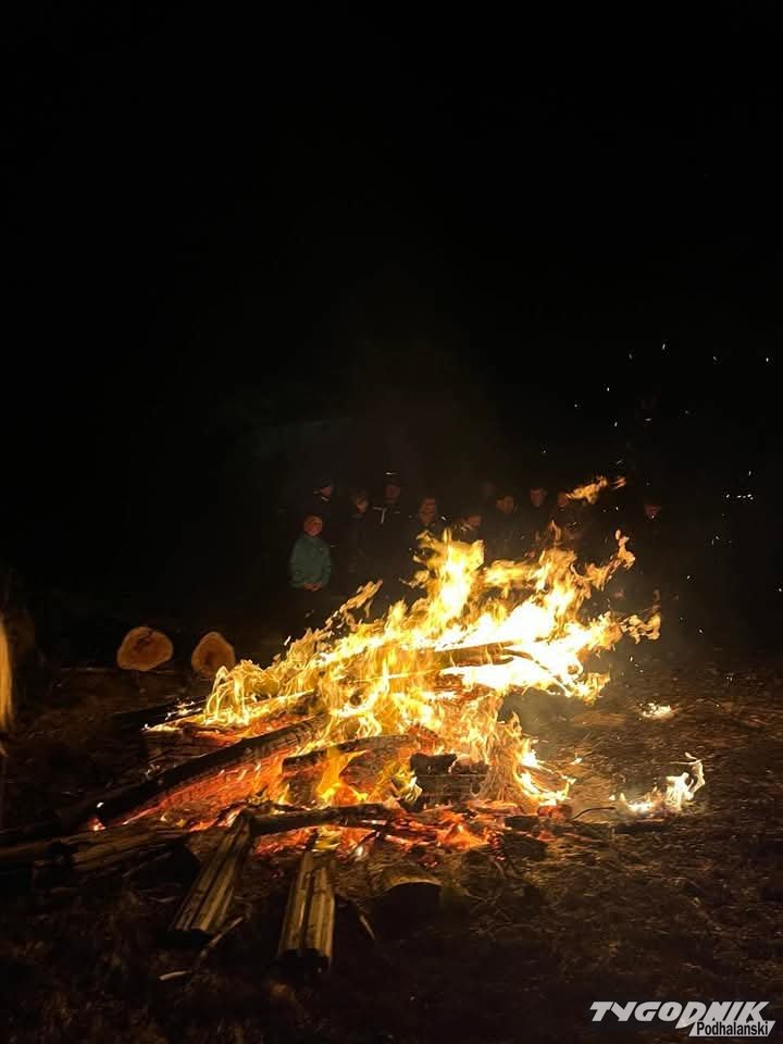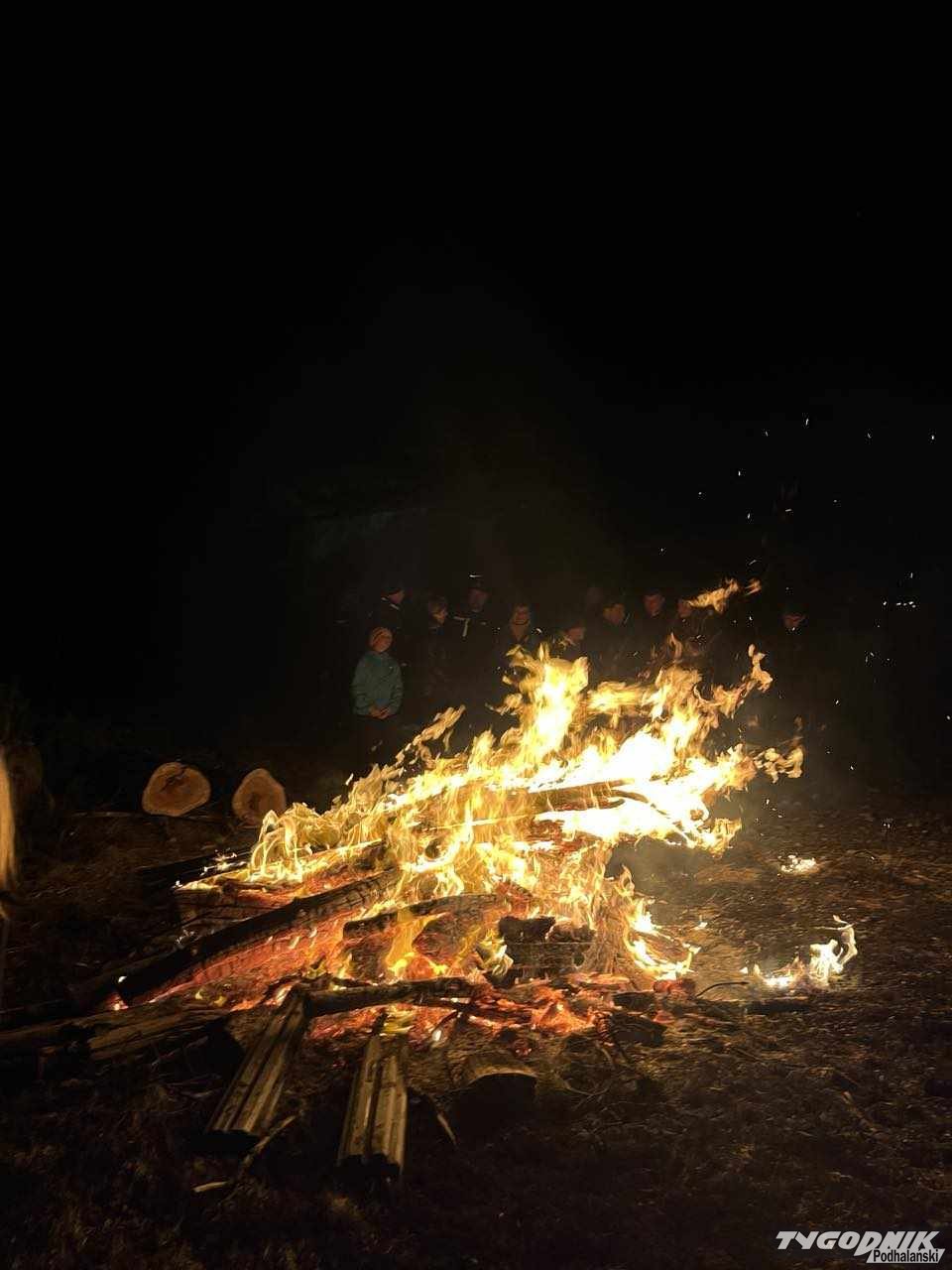O godz. 21:30 wierni zapalili watrę, a o godz. 21:37 wspólnie odśpiewali Barkę, ulubioną pieść św. Jana Pawła II. Spotkanie zorganizowała Parafia św. Jacka w Groniu-Leśnicy i strażacy z tamtejszej Ochotniczej Straży Pożarnej. Fot. Dawid Mulica.
