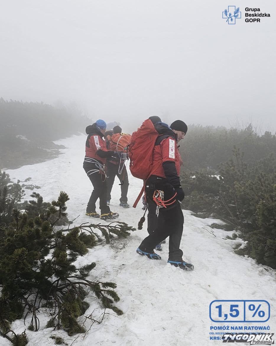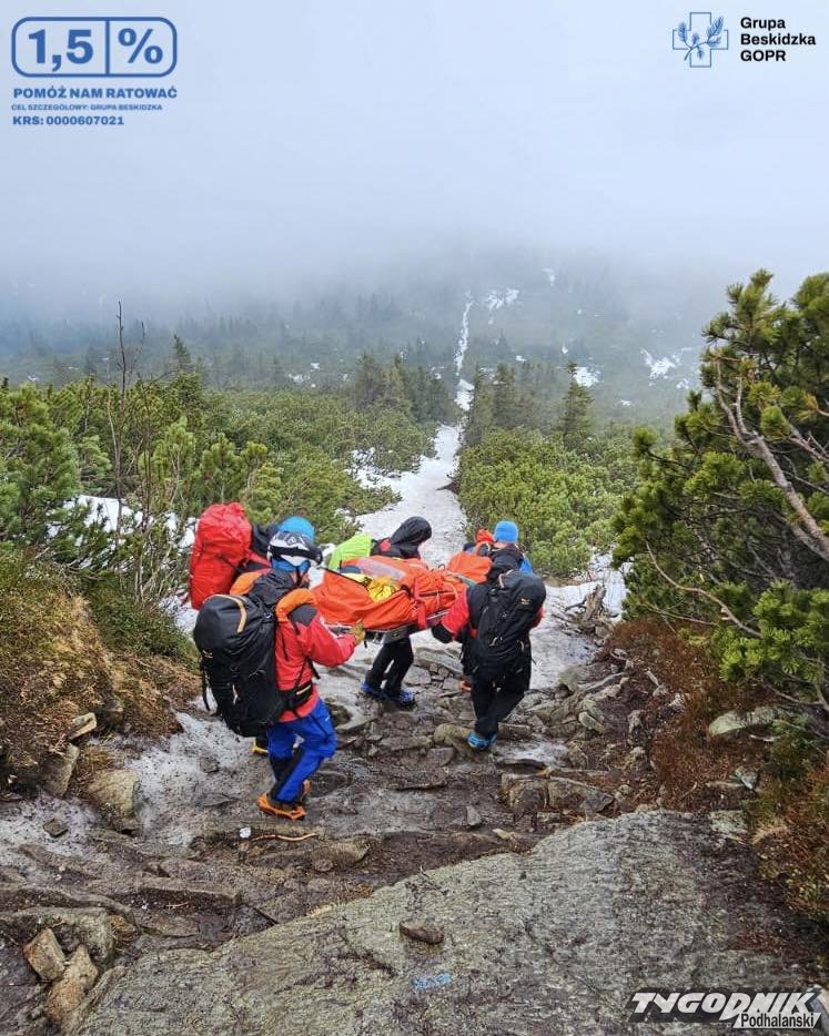 Niedziela, godz. 14.00 - ratownicy ponownie interweniowali w przypadku urazu nogi u turystki. Po zaopatrzeniu kobieta została również przewieziona do Zawoi Markowej.