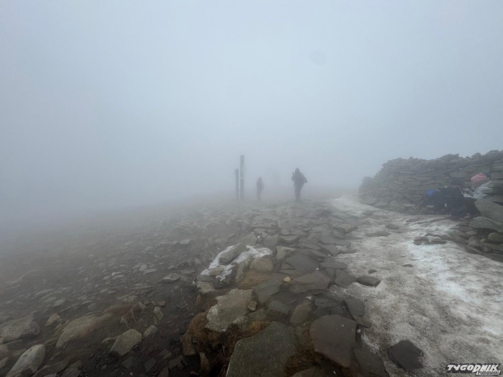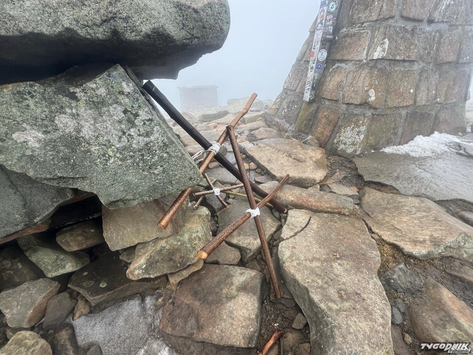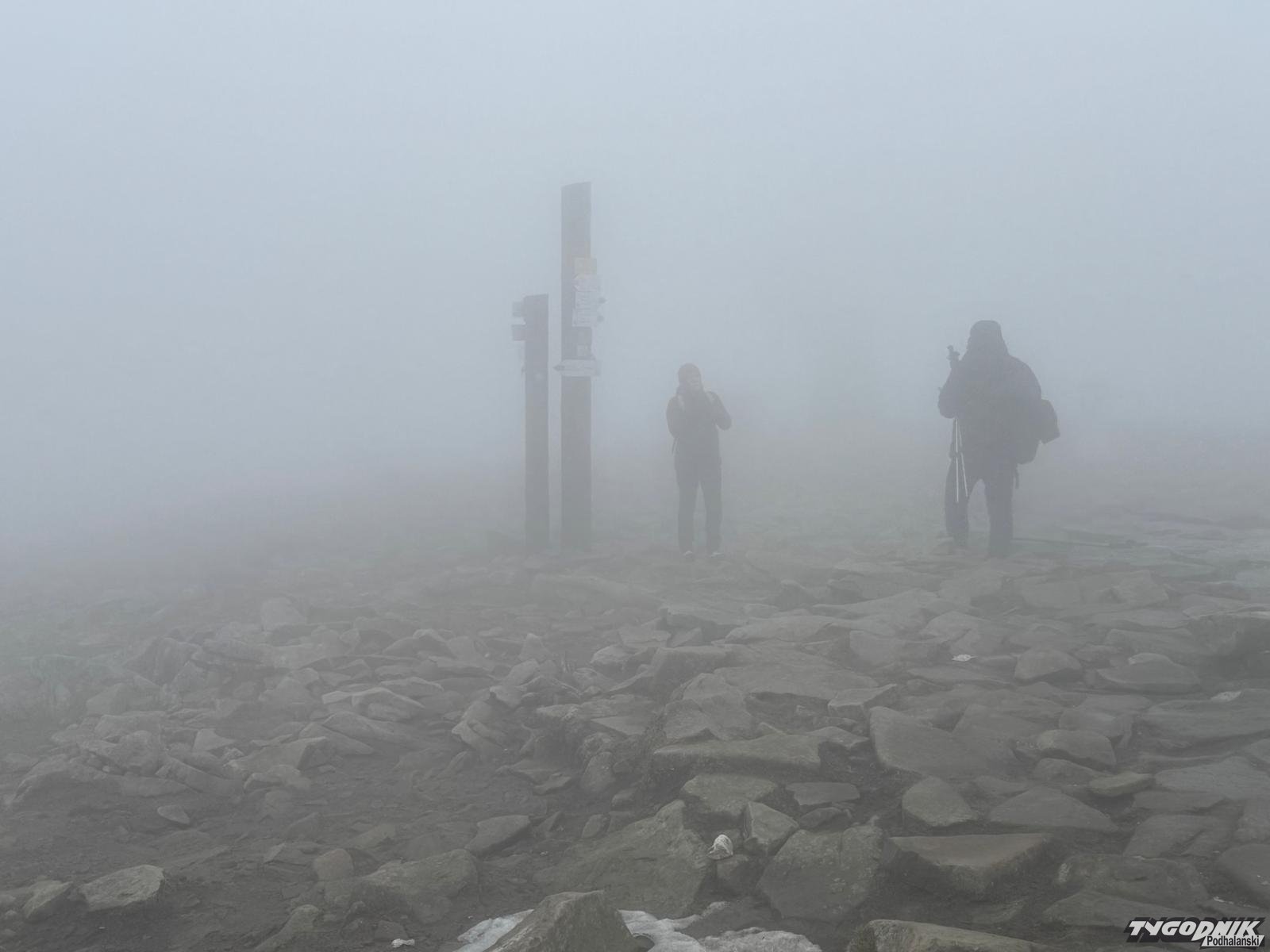 Powyżej przełęczy wzmaga się wiatr. Przed samym szczytem wieje chyba z dwieście na godzinę. Zrywa z twarzy okulary i wyrywa z rąk kijki. Jest potwornie zimno i mglisto. Sceneria grozy naprawdę godna Drogi Krzyżowej. Na samym Diablaku wzrok kieruje się pierwsze na krzyż. Może to targane wiatrem flagi tak przykuwają uwagę. A może to jednak ta Droga Krzyżowa. Ostatnia, czternasta stacja. Wierzyć się nie chce, że to już koniec. Na szczycie niezbyt wielki stosik powiązanych sznurkiem krzyży z patyków. Widać, że parę osób przeżywało tu wcześniej rozterki. I ruszało w dolinę z mocnym postanowieniem, że po tym wszystkim to jednak już musi być lepiej…