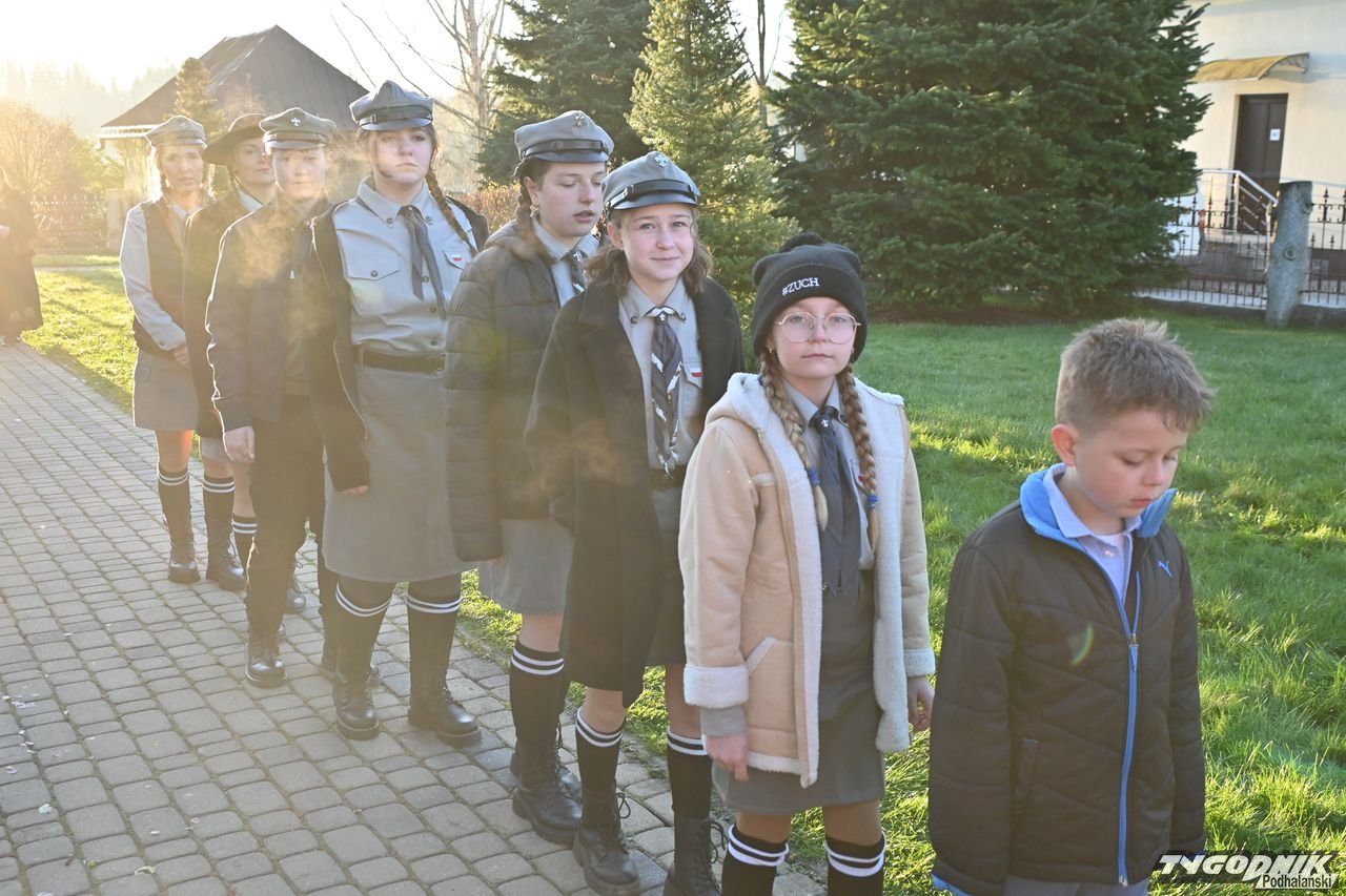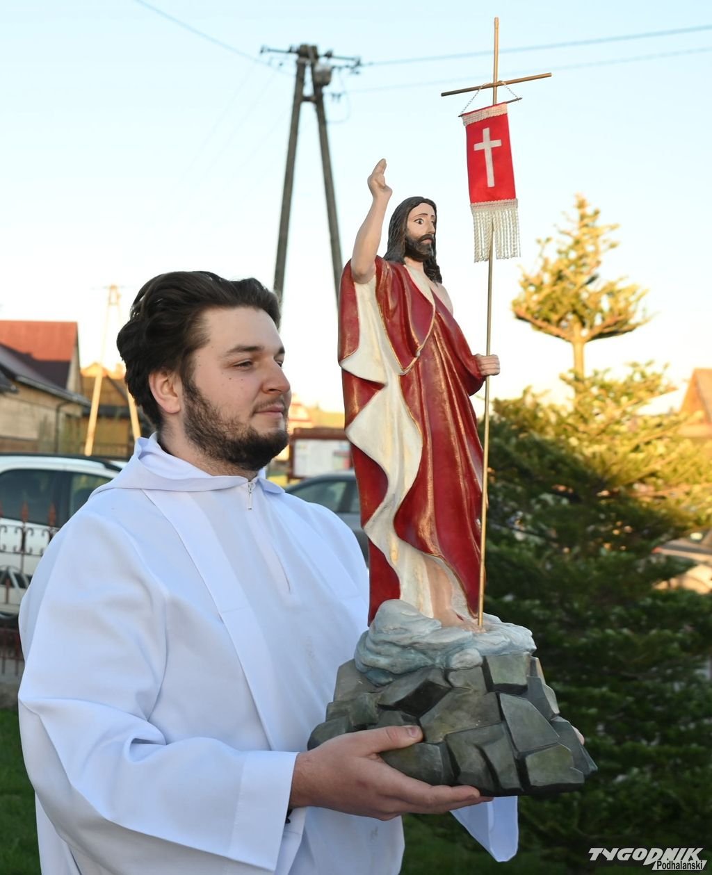 Na rezurekcję przybyła też drużyna harcerska, a przedstawiciele parafii nieśli różne feretrony, m.in. z postacią św. Jana Pawła II.