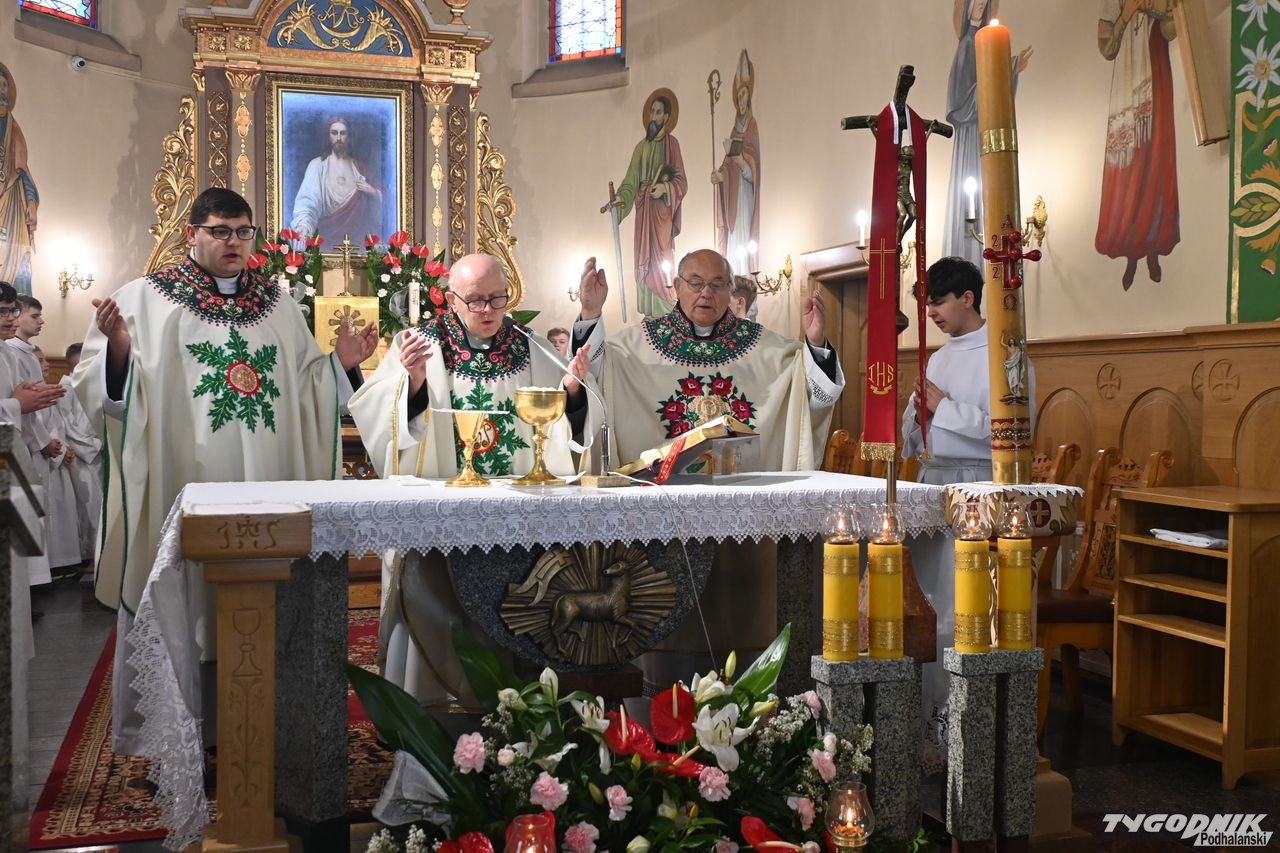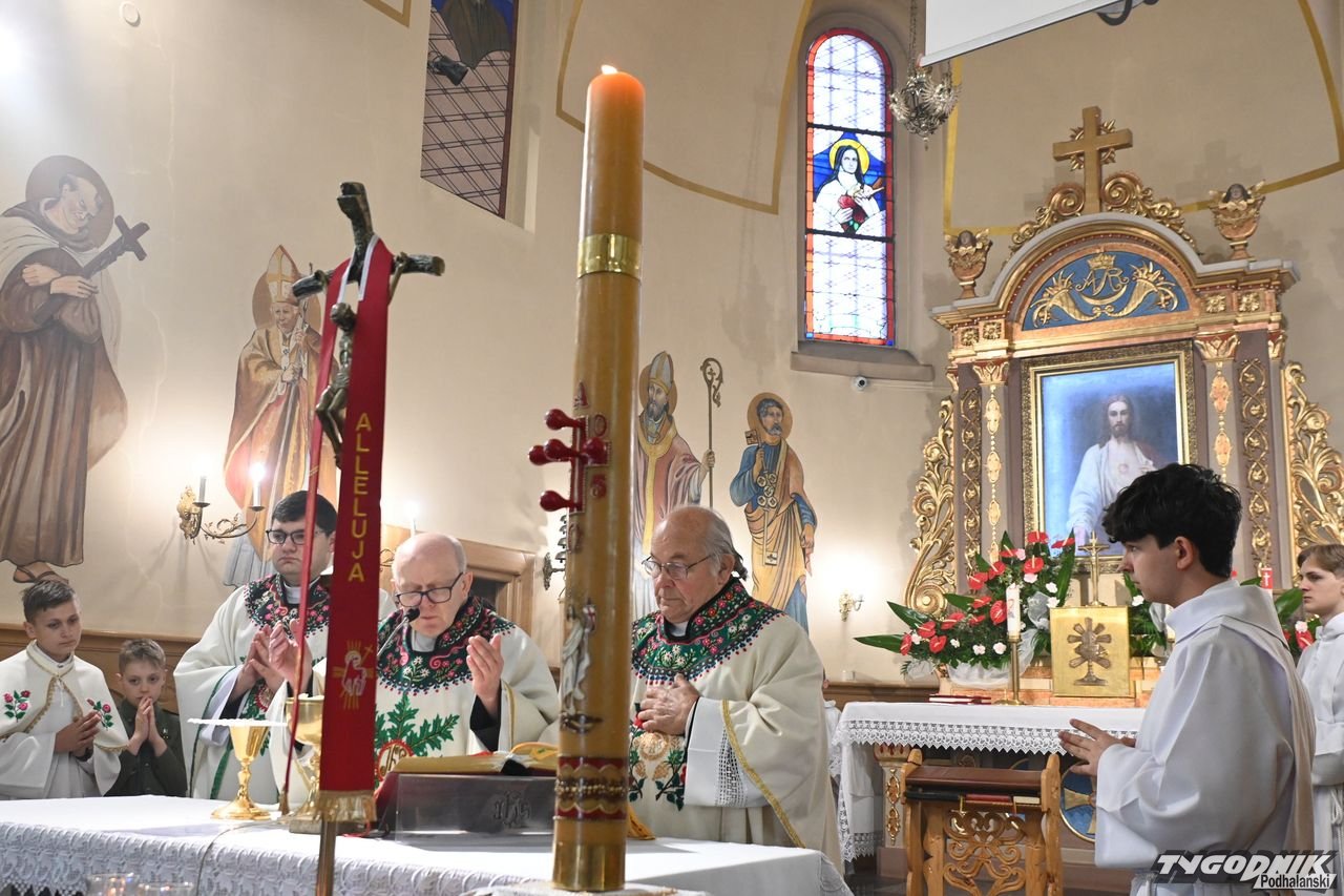 Ks. proboszcz Janusz Rzepa nawiązał do słów św. Grzegorza, który mówił o tym, że w dniu zmartwychwstania nie można milczeć. - Trzeba nam wiedzieć, że Chrystus żyje między nami. On pragnie, byśmy odnowili swoje życie, wzięli Go za swojego przewodnika. W tym wspaniałym dniu przywołajmy pozdrowienie pierwszych chrześcijan: "Chrystus prawdziwie zmartwychwstał" i z nim na ustach wracajmy do naszych domów - mówił ks. J. Rzepa. Eucharystii współprzewodniczyli także inni duchowni: ks. wikary Artur Kulak i ks. Jan Frączek.