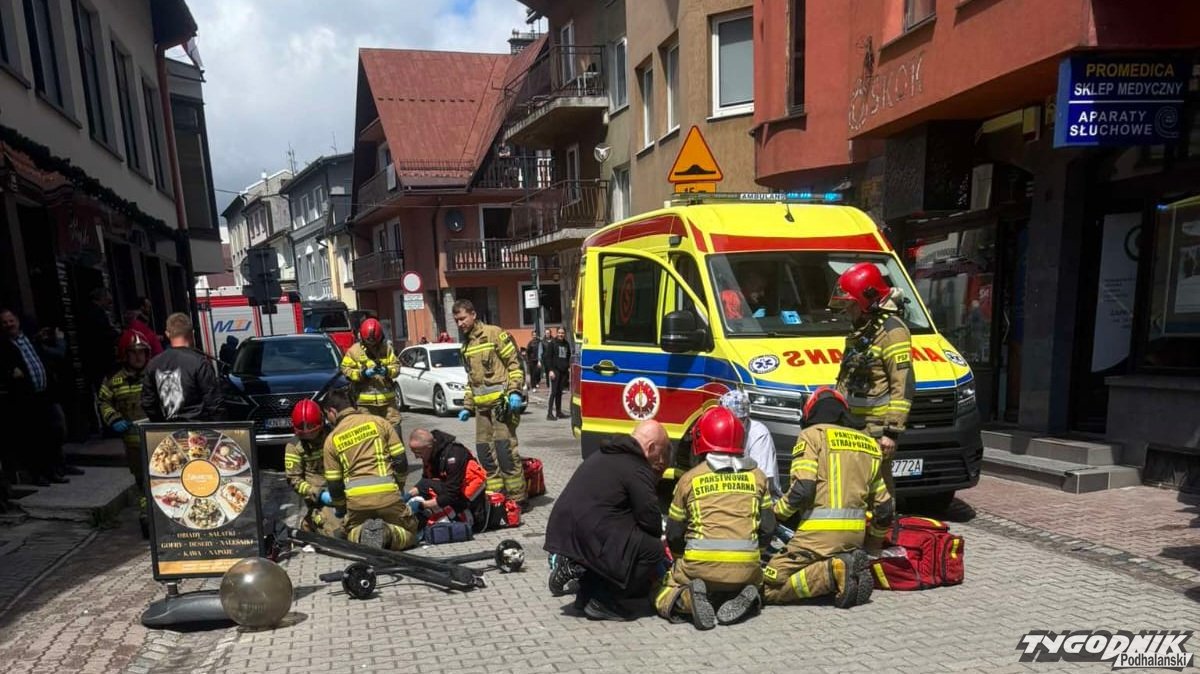 W Nowym Targu lampa uliczna spadła na przechodniów.