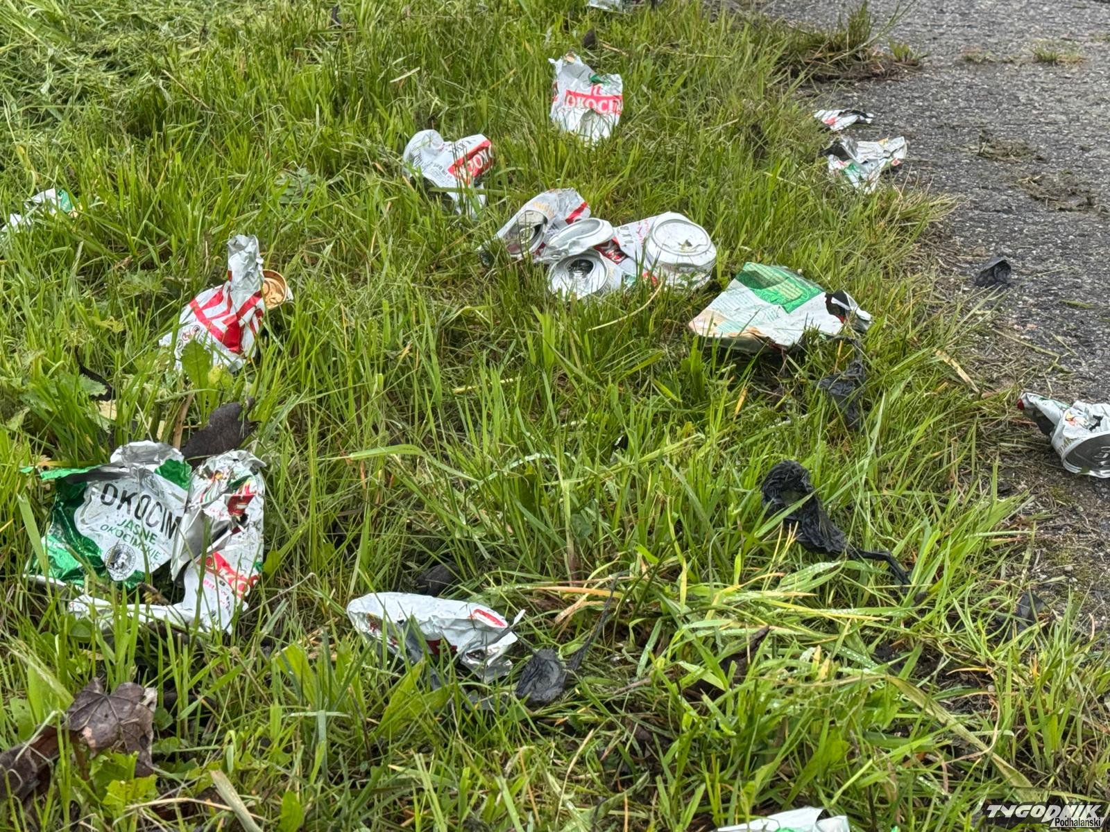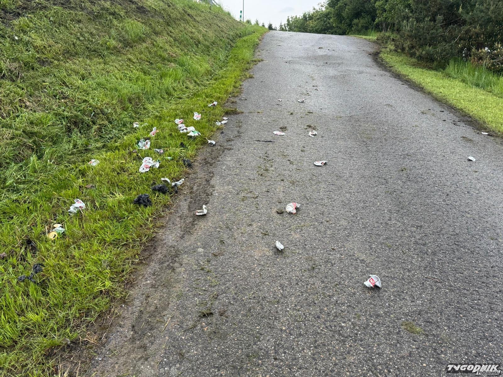 Droga serwisowa, przy dwupasmówce w Chabówce to jedno, wielkie, dzikie wysypisko śmieci.