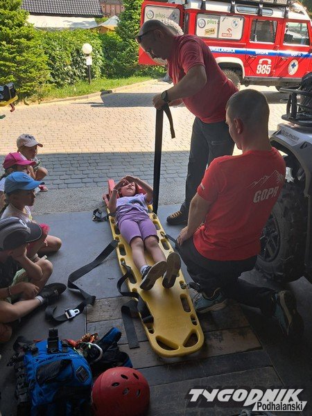 To była ciekawa lekcja. Dzieci z bliska zobaczyły wyposażenie i pojazdy GOPR-owców. Zaprzyjaźniły się z psem ratowniczym.