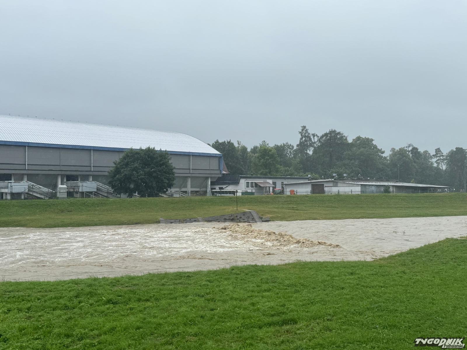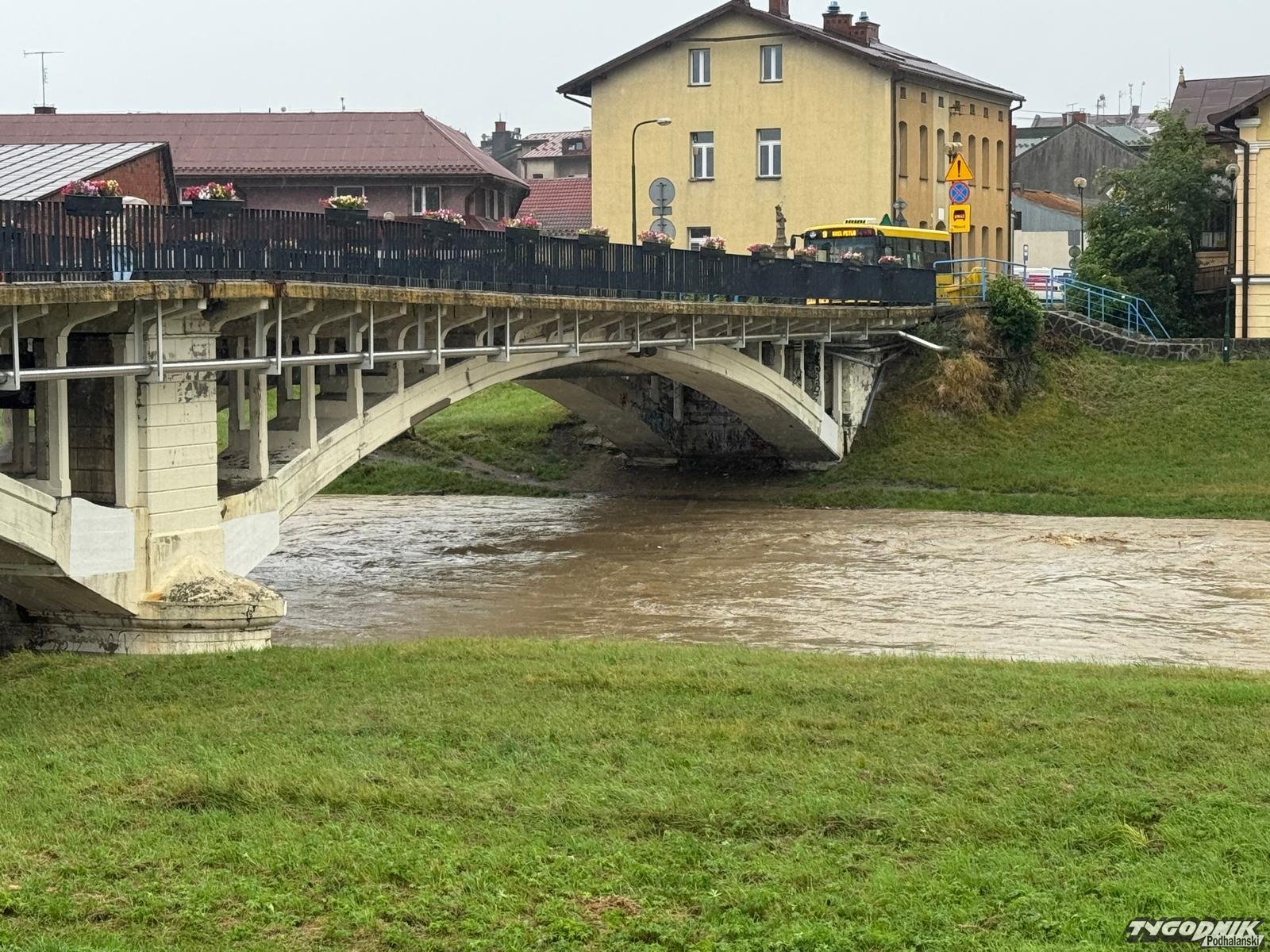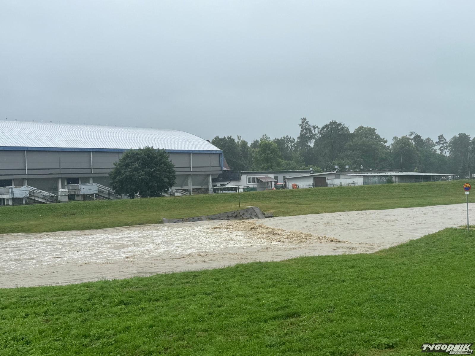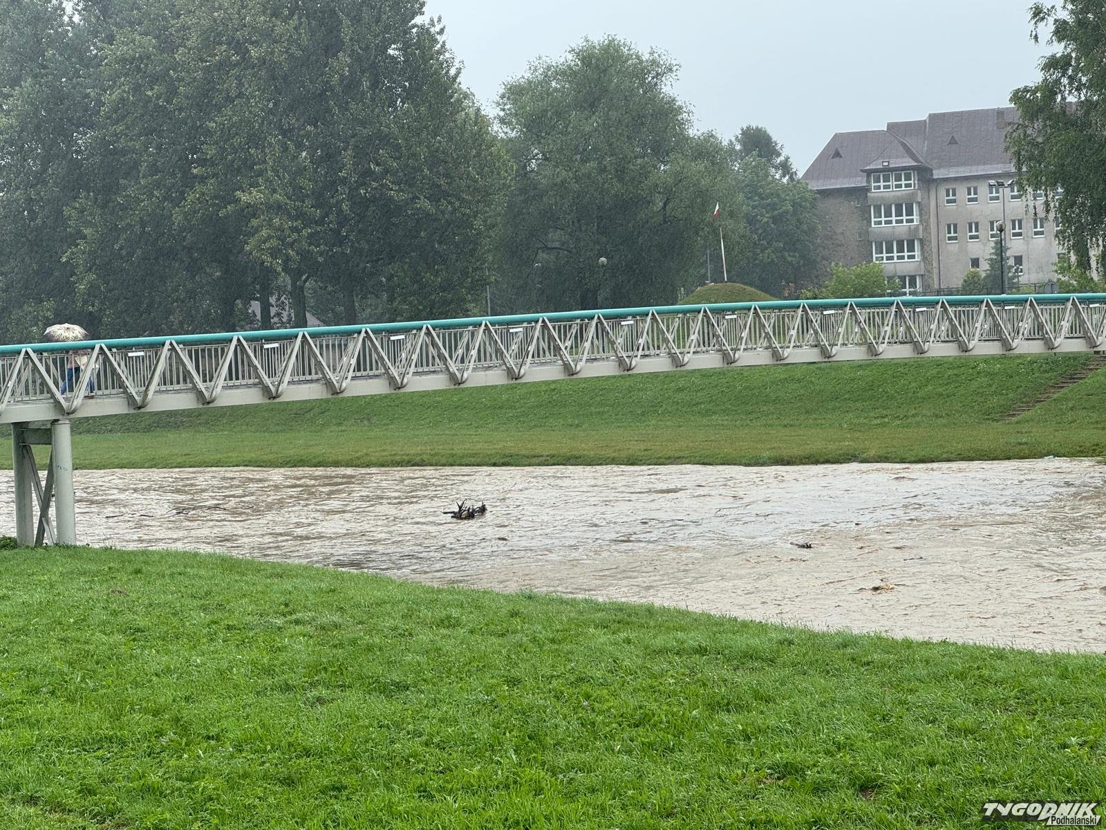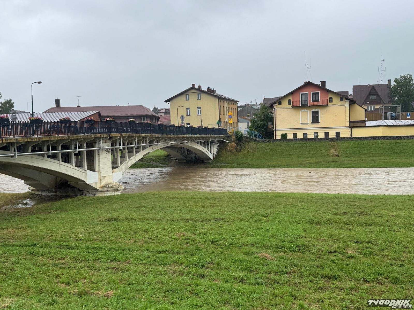 Czarny Dunajec bardzo wezbrał na odcinku, gdzie rzeka przepływa przez Nowy Targ. Woda jest wzburzona a jej poziom kilkakrotnie przewyższa stan, osiągany poza wezbraniami. Jednak rzeka wciąż mieści się w swym korycie. Niepokojące są jednak prognozy, które przewidują kolejne długotrwałe opady.