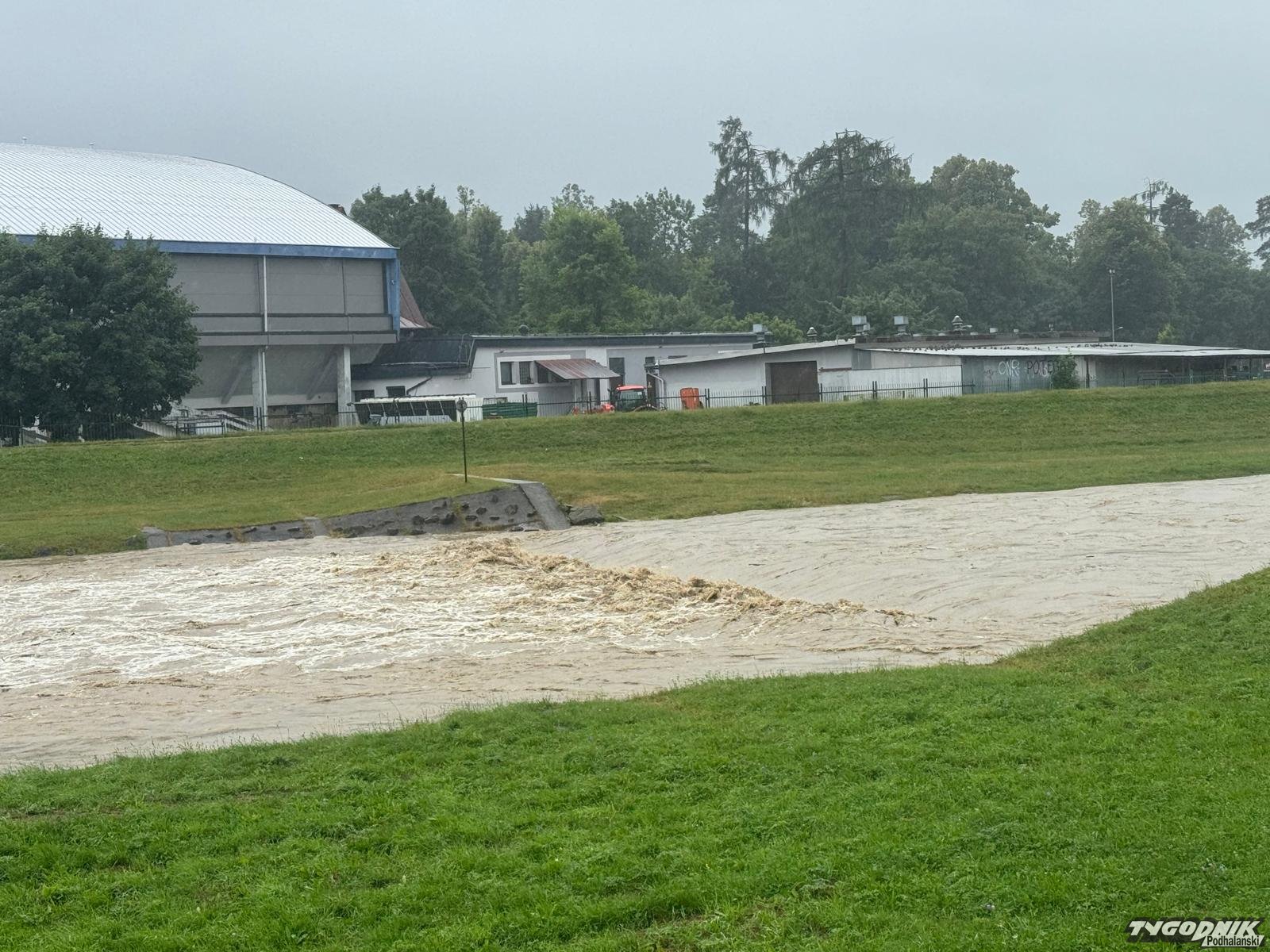 Wysoki stan Czarnego Dunajca w Nowym Targu (WIDEO)