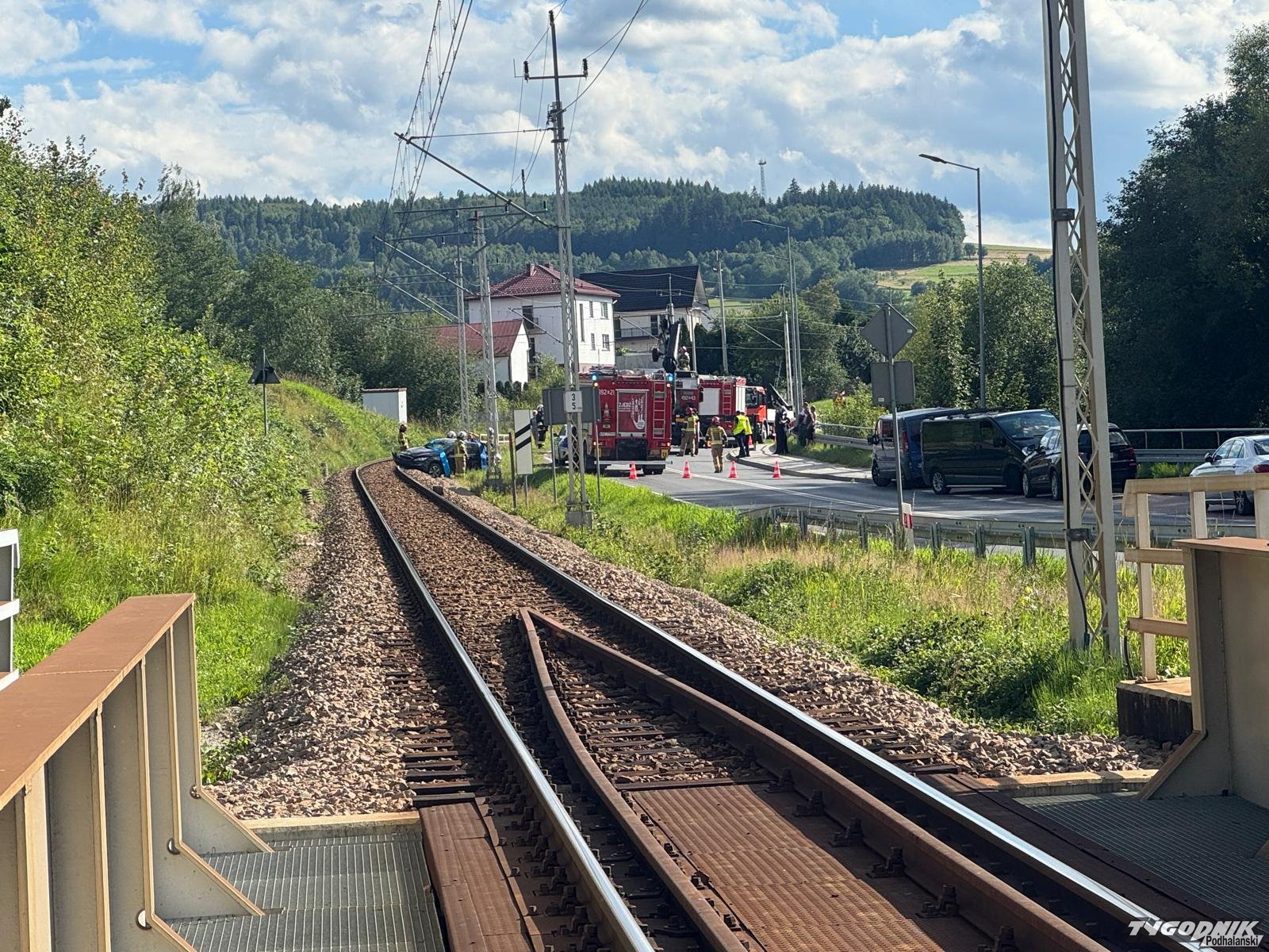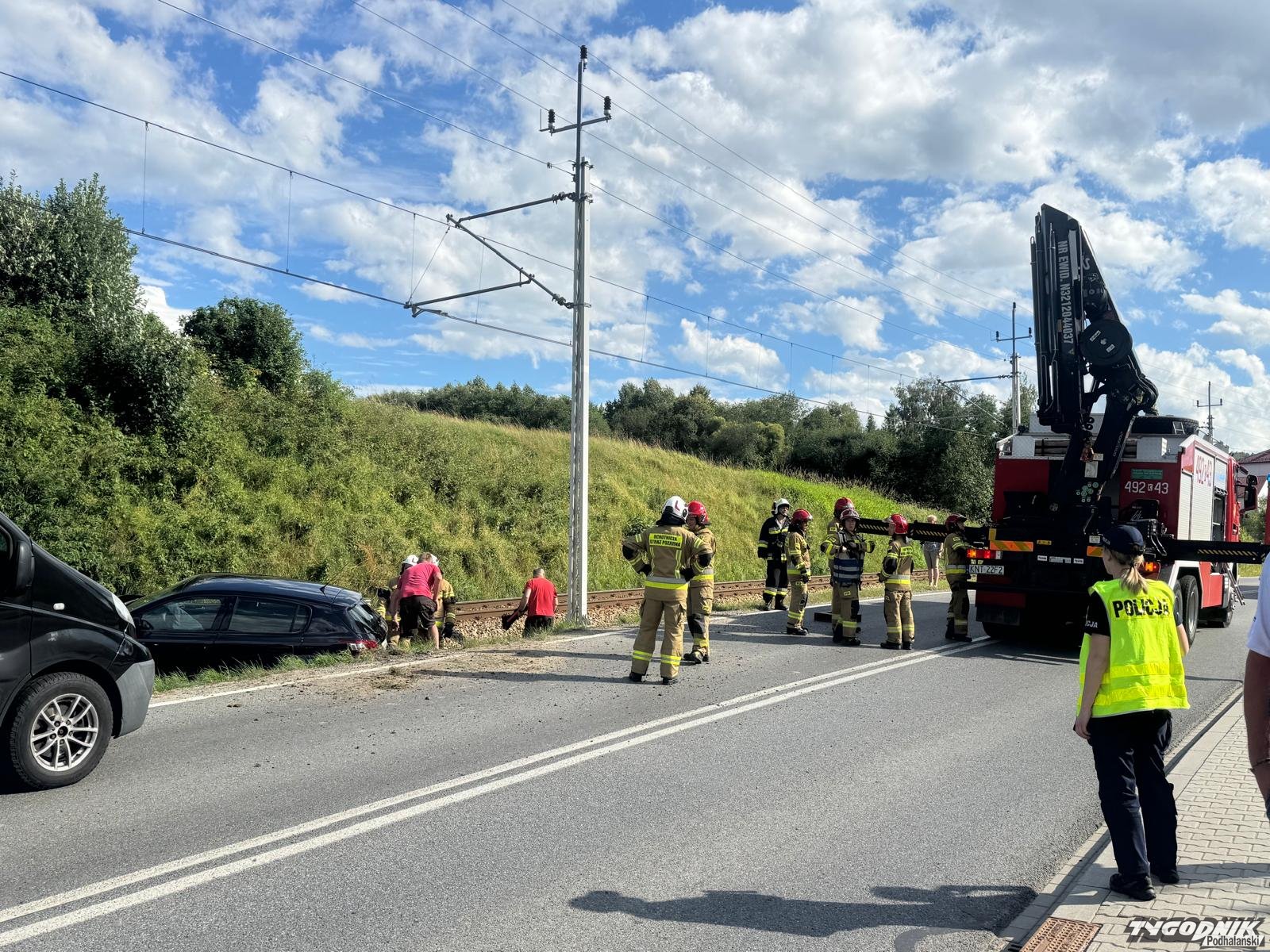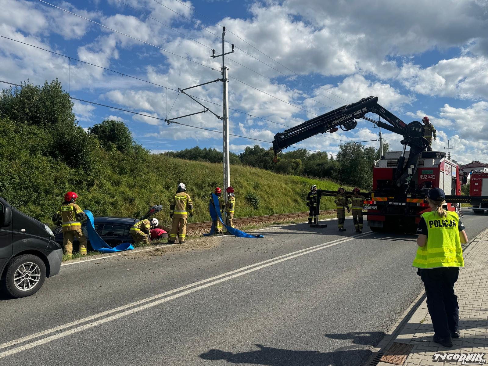 Auto wpadło na tory kolejowe i utknęło - poważny wypadek w Rokicinach