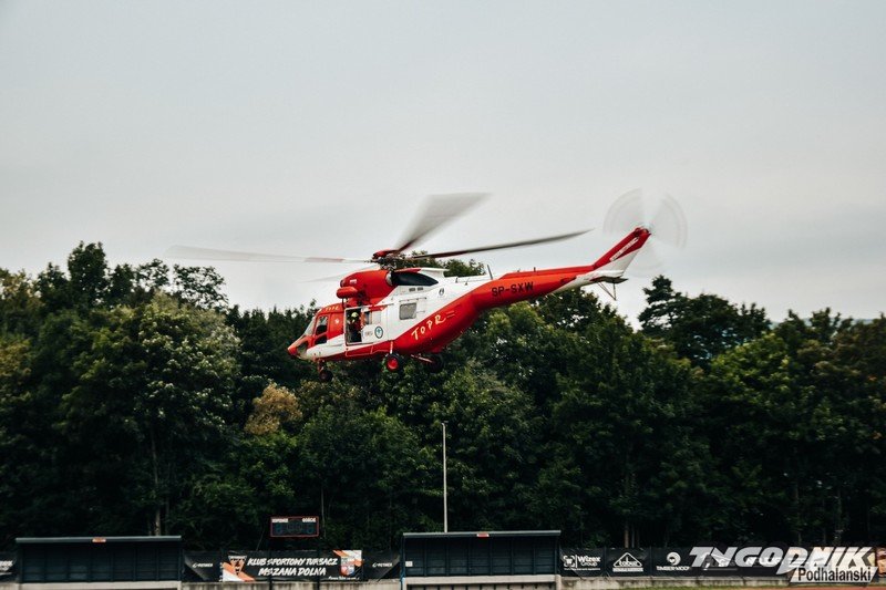 37-latek z obrażeniami głowy trafił śmigłowcem do szpitala.