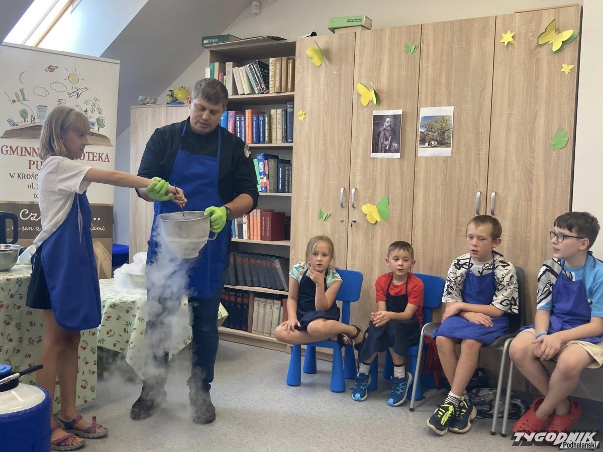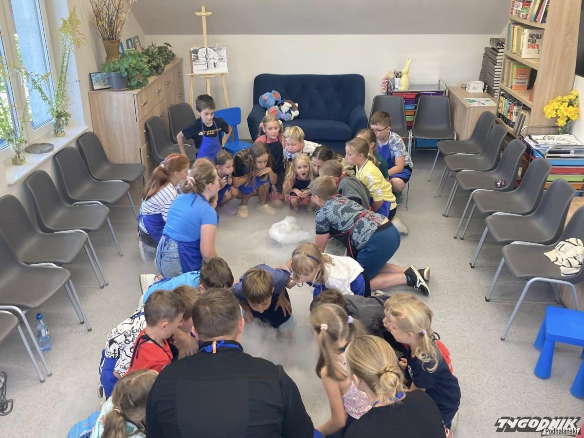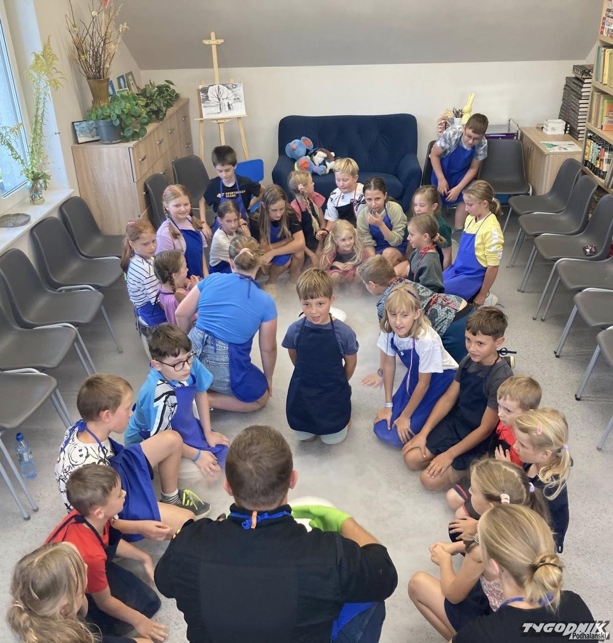 W ramach podziękowania za aktywny udział w wakacyjnych warsztatach, najmłodsi czytelnicy Gminnej biblioteki Publicznej w Krościenku mieli okazję uczestniczyć w niezwykłym wydarzeniu. Akademia Kuchcika przygotowała widowiskowy pokaz, w którym nauka połączyła się z dobrą zabawą.