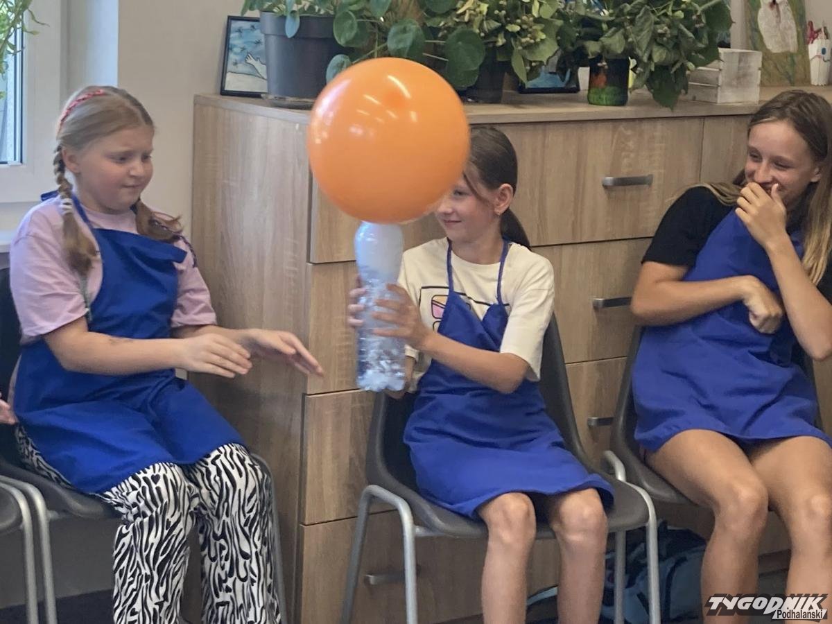 Eksperymentom towarzyszyły ciekawostki zaczerpnięte z książek popularnonaukowych dostępnych w bibliotece. Młodzi czytelnicy dowiedzieli się m.in. czym jest sublimacja oraz dlaczego balony potrafią zmieniać swój rozmiar.