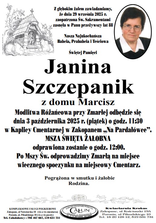 2025-10-02 21:00 Gmina Spytkowice wyróżniona 2025-10-02 20:00 Akcja charytatywna Przyjaźń Łączy - Wspólnie dla Zwierząt 2025-10-02 19:30 Jesienne Biegi Przełajowe "Pod Trzema Koronami" 2025-10-02 19:00 Utrudnienia drogowe w Tunelu na zakopiance 2025-10-02 18:30 O małym Ignasiu, ale wielkim Polaku. Mamy dla Was książki 2025-10-02 18:00 Pacjenci zostawiają auta gdzie popadnie, wierni nie mogą wyjechać spod kościoła 2 2025-10-02 17:30 Przez żołądek do... Szczawnicy 2 2025-10-02 17:00 MIeszkańcy Zębu domagają się od władz gminy budowy przejścia dla pieszych 4 2025-10-02 16:32 Badania okulistyczne - dlaczego należy pojawiać się regularnie u okulisty? 2025-10-02 16:00 Spotkanie na styku kultur 2025-10-02 15:22 Praca i pasja: jak łączyć zainteresowania z życiem zawodowym? 2025-10-02 15:06 Chemia basenowa do basenów stelażowych - co wybrać i jak stosować bezpiecznie 2025-10-02 15:00 Zlikwidować dwie małe tężnie na rabczańskich bulwarach? 5 2025-10-02 14:37 Zaproszenie na wernisaż wystawy Węglem i kredką rysowane 2025-10-02 14:30 Pierwsze Święto Karpat w Ludźmierzu 2025-10-02 14:30 W sobotę Przegląd Artystyczny Kół Gospodyń Wiejskich 2025-10-02 14:00 POLKI FOLKI w Nosalowym Dworze w złotym wydaniu 2025-10-02 13:00 Stypendia i nagrody sportowe dla uczniów i młodych zawodników 2025-10-02 12:00 Konkurs historyczny o rodzinie Zamoyskich w stulecie Fundacji Zakłady Kórnickie 2025-10-02 11:18 Audiobooki na wieczór - dlaczego warto słuchać książek przed snem? 2025-10-02 11:00 Nauczycielski awans dla dziewiątki nauczycieli 2025-10-02 09:42 Pożar w Białym Dunajcu 2025-10-02 09:30 Kolumna informacyjna Urzędu Miasta Zakopane 2025-10-02 09:00 Okradli autokar 1 2025-10-02 08:30 W Zakopanem działa już ogrzewalnia 1 2025-10-02 08:30 Bogusław Linda w najnowszym filmie Władysława Pasikowskiego. Mamy dla Was bilety 2 2025-10-02 08:00 Grupa do Spraw Cudzoziemców Placówki SG w Zakopanem przeniesiona do Nowego Targu 2 2025-10-01 21:00 Złote Krokusy rozdane 2025-10-01 20:00 Budowa boiska w Zarytem ciągnie się już cztery lata 3 2025-10-01 19:30 "Punkt Styku". Wernisaż w Galerii Antoniego Rząsy 2025-10-01 19:00 Mamy premierowy teledysk od FiśBandy do piosenki "Duszo ma" (WIDEO) 1 2025-10-01 18:30 Macierzyństwo w obrazach na szkle i w rzeźbie 2025-10-01 18:02 Wybił szybę w autobusie, bo kierowca zwrócił mu uwagę 5 2025-10-01 17:32 Samochód zatrzymał się dopiero na ogrodzeniu 2 2025-10-01 17:29 Krzysztof "Puma" Piasecki zagra w Karczmie pod Gontem 2025-10-01 17:01 Festiwal Inspirowane Górami już niebawem, są nowości i wiele atrakcji 2025-10-01 16:30 Spór o Portugalską Chatę zaostrza się 6 2025-10-01 16:00 Odbierak odpowie za oszustwo "na legendę" 2025-10-01 14:47 Wypadek na "patelniach" na zakopiance. Są utrudnienia w ruchu 2025-10-01 14:30 Koncert urodzinowy u Karola z Atmy 2025-10-01 14:00 Sukces nowotarżan na Triennale Sztuki Naiwnej i Art Brut Pogranicza Polsko-Słowackiego 2025-10-01 13:30 Trwa nabór wniosków na przydomowe kompostowniki 1 2025-10-01 13:09 Pierwszy stopień zagrożenia lawinowego w Tatrach (WIDEO) 2025-10-01 12:00 Pobieranie opłaty miejscowej to nie przywiej, ale obowiązek jaki ma Zakopane (WIDEO) 10 2025-10-01 11:00 Nowe nazwy ulic w Dzianiszu, nie trzeba wymieniać dowodów osobistych 3 2025-10-01 10:00 Przybyło śniegu w Tatrach 2025-10-01 10:00 Tu nauka jest magiczna - Małopolska Noc Naukowców 2025 już za nami 2025-10-01 09:00 Sterylizacja wolno żyjących, dzikich kotów i nie tylko 2025-10-01 08:00 Przeziyracka w Czarnym Dunajcu 2025-09-30 21:00 Janusz Tomasiewicz zakończył pracę w GPN
