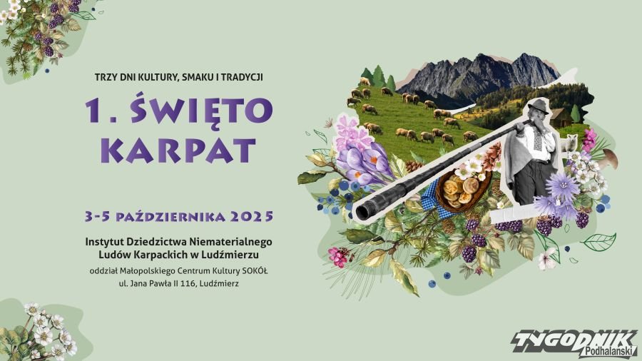 Z tej okazji zapraszamy od 3 do 5 października na teren Instytutu Dziedzictwa Niematerialnego Ludów Karpackich w Ludźmierzu - oddział MCK SOKóŁ. Program Święta Karpat na plakacie niżej.