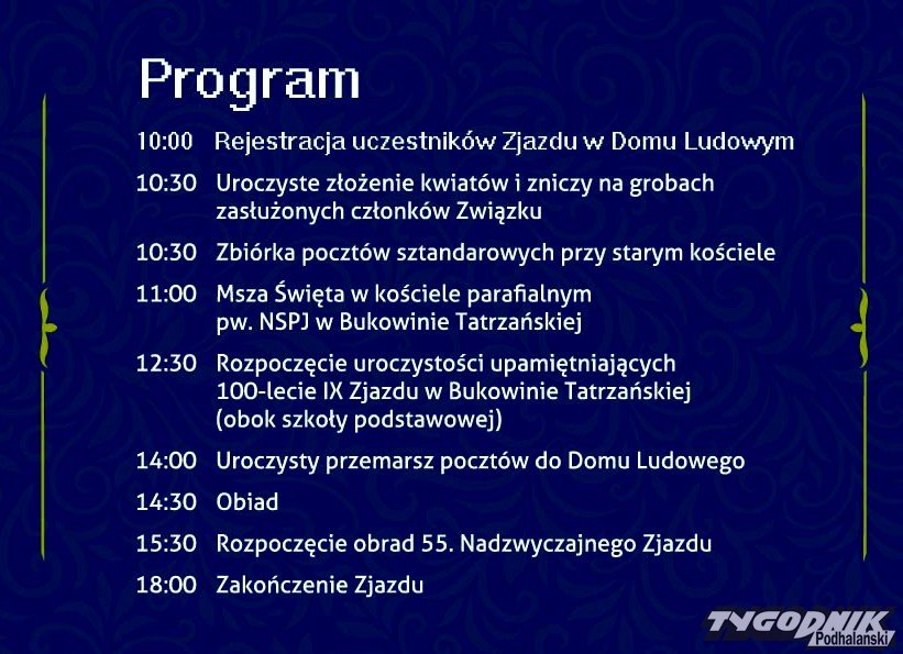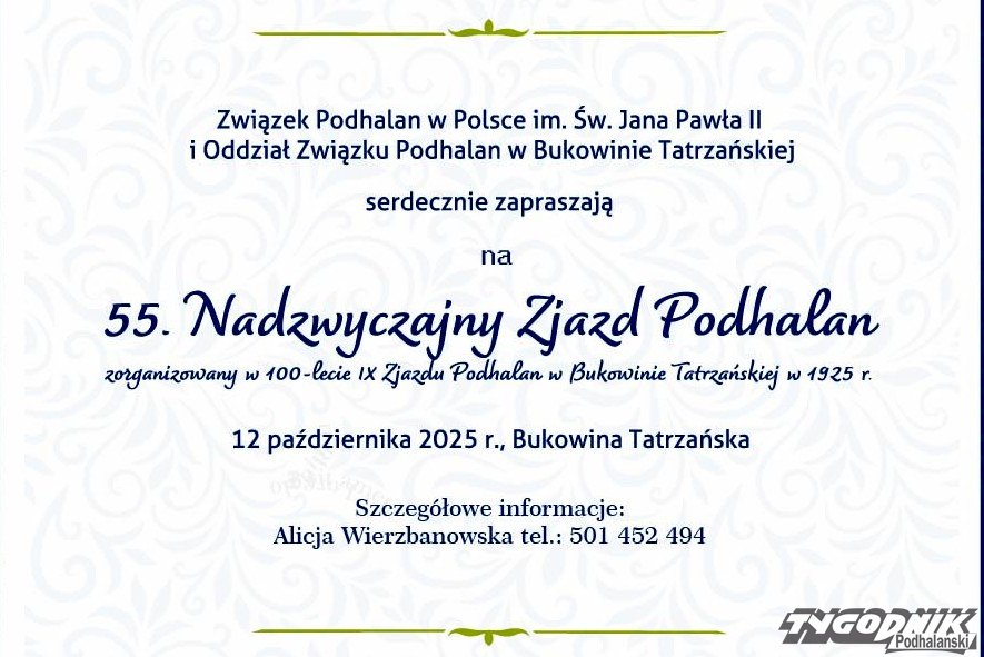 55. Nadzwyczajny Zjazd Podhalan odbędzie się 12 października w Bukowinie Tatrzańskiej.