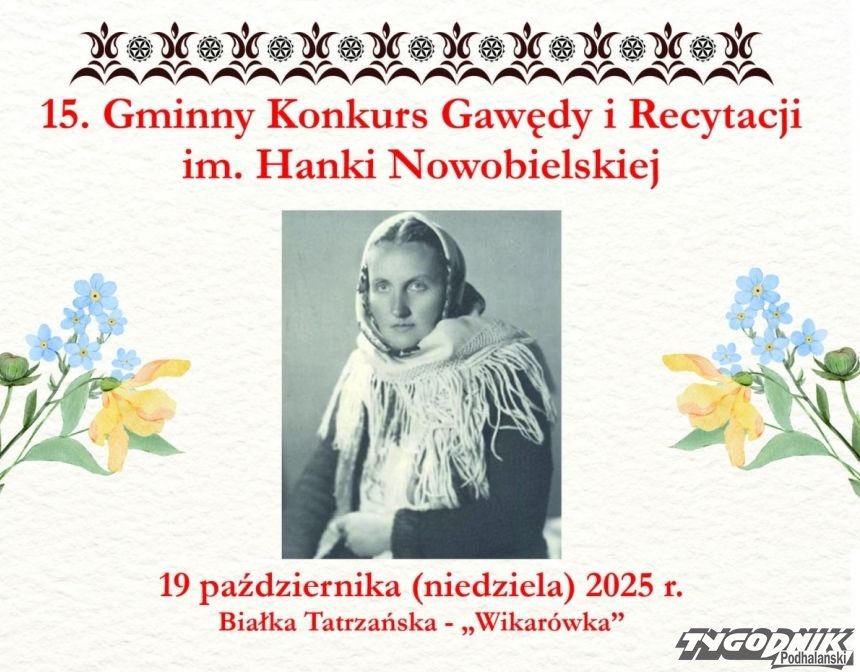 W niedzielę 19.10 zapraszamy do Białki Tatrzańskiej, gdzie odbędzie się 15. Gminny Konkurs Gawędy i Recytacji im. Hanki Nowobielskiej.