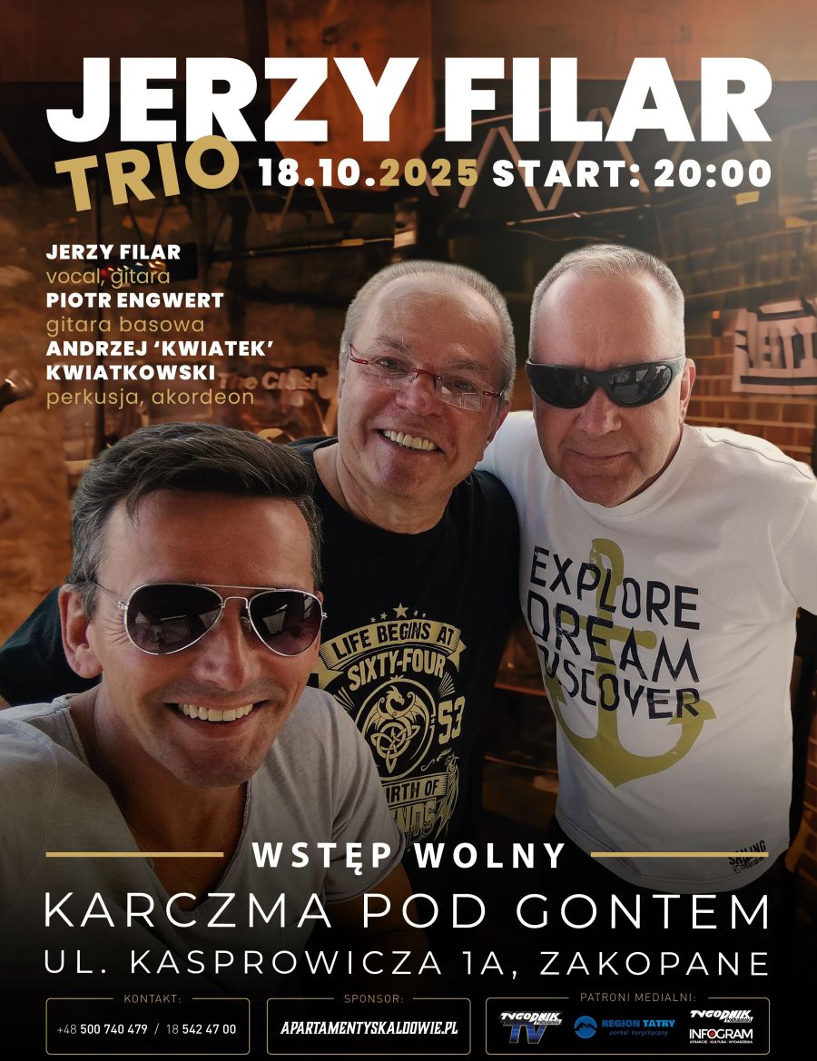 W zakopiańskiej Karczmie pod Gontem w sobotę 18.10 koncert zagra Jerzy Filar Trio.