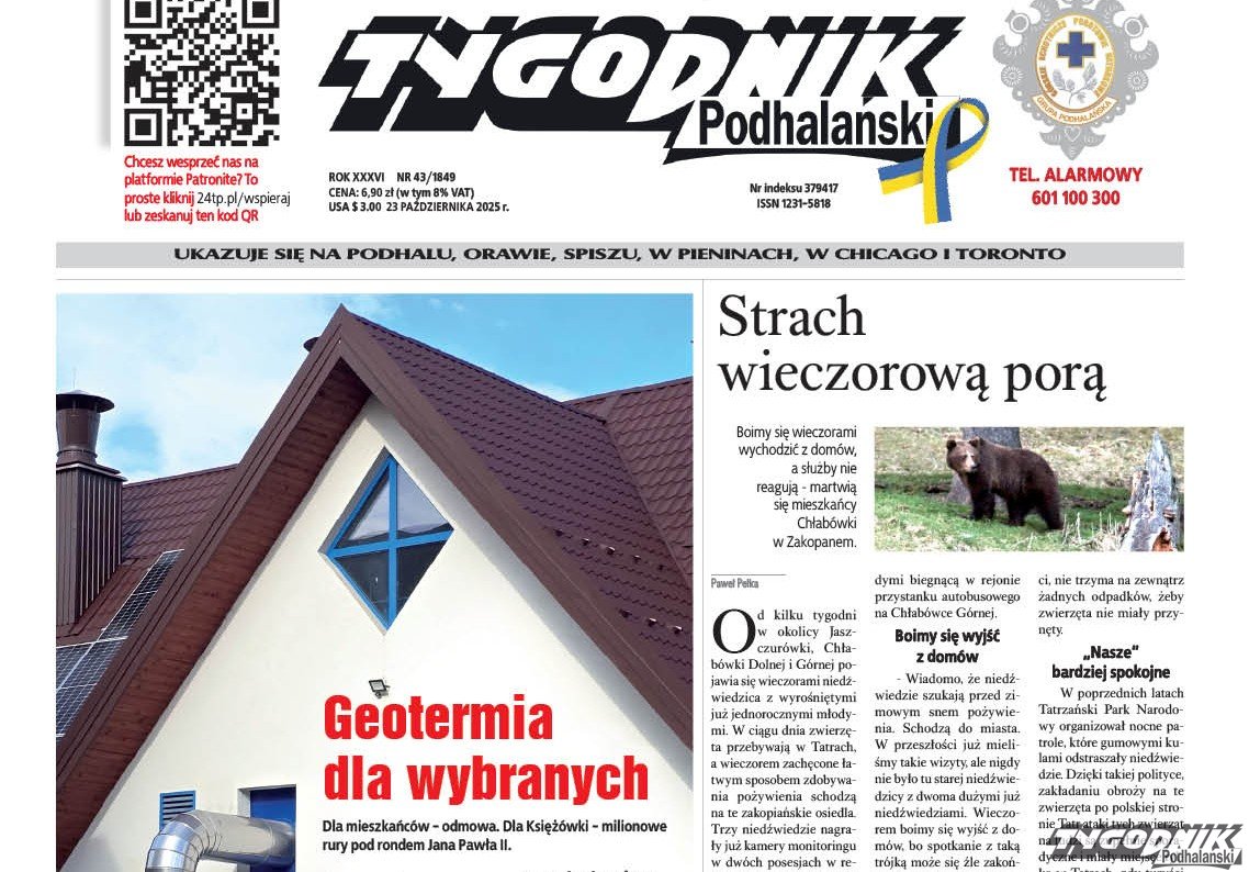 W papierowym wydaniu TP piszemy o geotermalnych inwestycjach w Zakopanem: Dla mieszkańców - odmowa. Dla Księżówki - milionowe rury pod rondem Jana Pawła II.