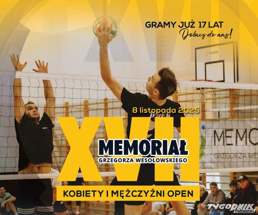 W sobotę 8.11 odbędzie się XVII edycja Memoriału Grzegorza Wesołowskiego w piłce siatkowej.
