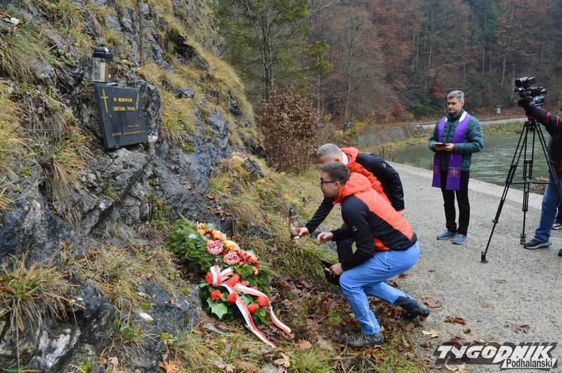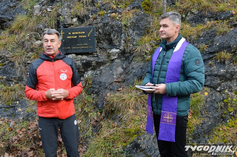 Polscy i słowaccy ratownicy górscy zapalili znicze i złożyli wiązanki kwiatów pod turnią skalną w Pieninach.
