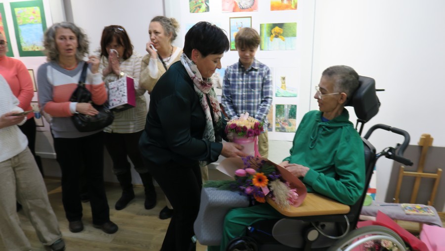 Z pomocą przyjaciół z Domu Pomocy Społecznych pokazała jak tworzy swe obrazy w Tatrzańskim Centrum Kultury "Jutrzenka" w Zakopanem. Okazja do spotkania było otwarcie jej wystawy. Prace artystki już po raz drugi po wielu latach goszczą w "Jutrzence", w Galerii ARTPARK.
