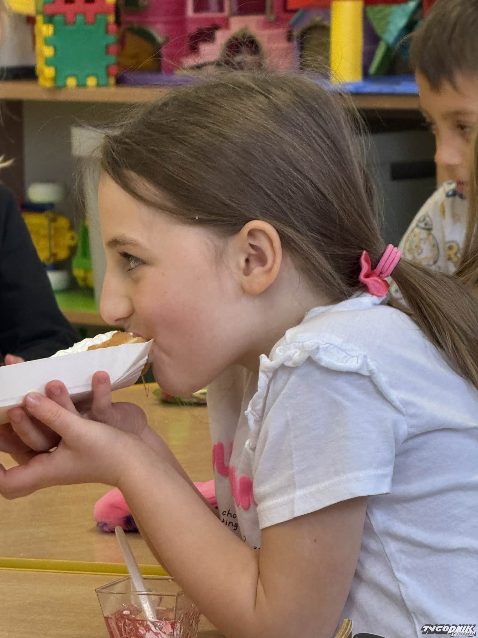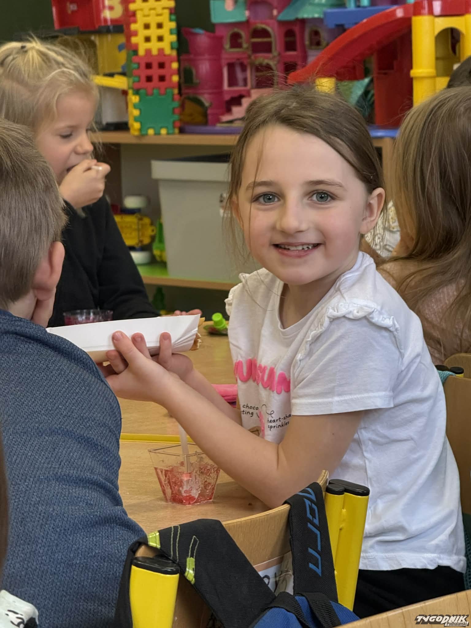 Nie zabrakło także wyjątkowych gofrów przygotowanych z sercem przez panie z obsługi, które jak zawsze zadbały o wspaniałą atmosferę i smakowite przysmaki. Dodatkową atrakcją była możliwość zakupu rękodzieła wykonanego przez kobiety z Afryki - kolorowych poduszek i bransoletek, które wzbudziły duże zainteresowanie wśród dzieci i dorosłych.