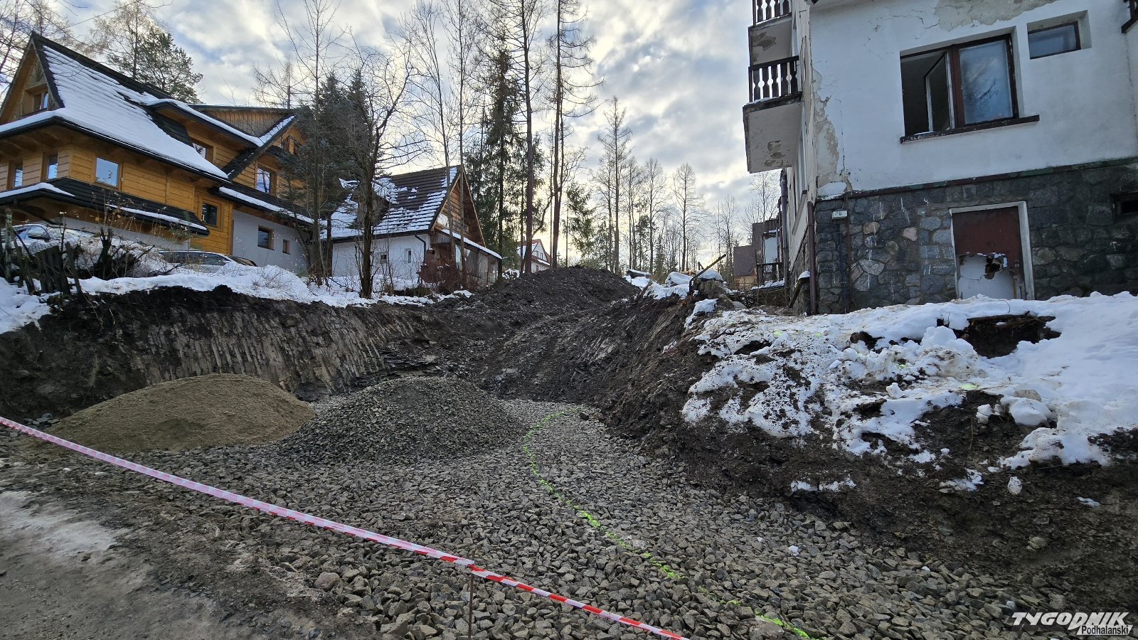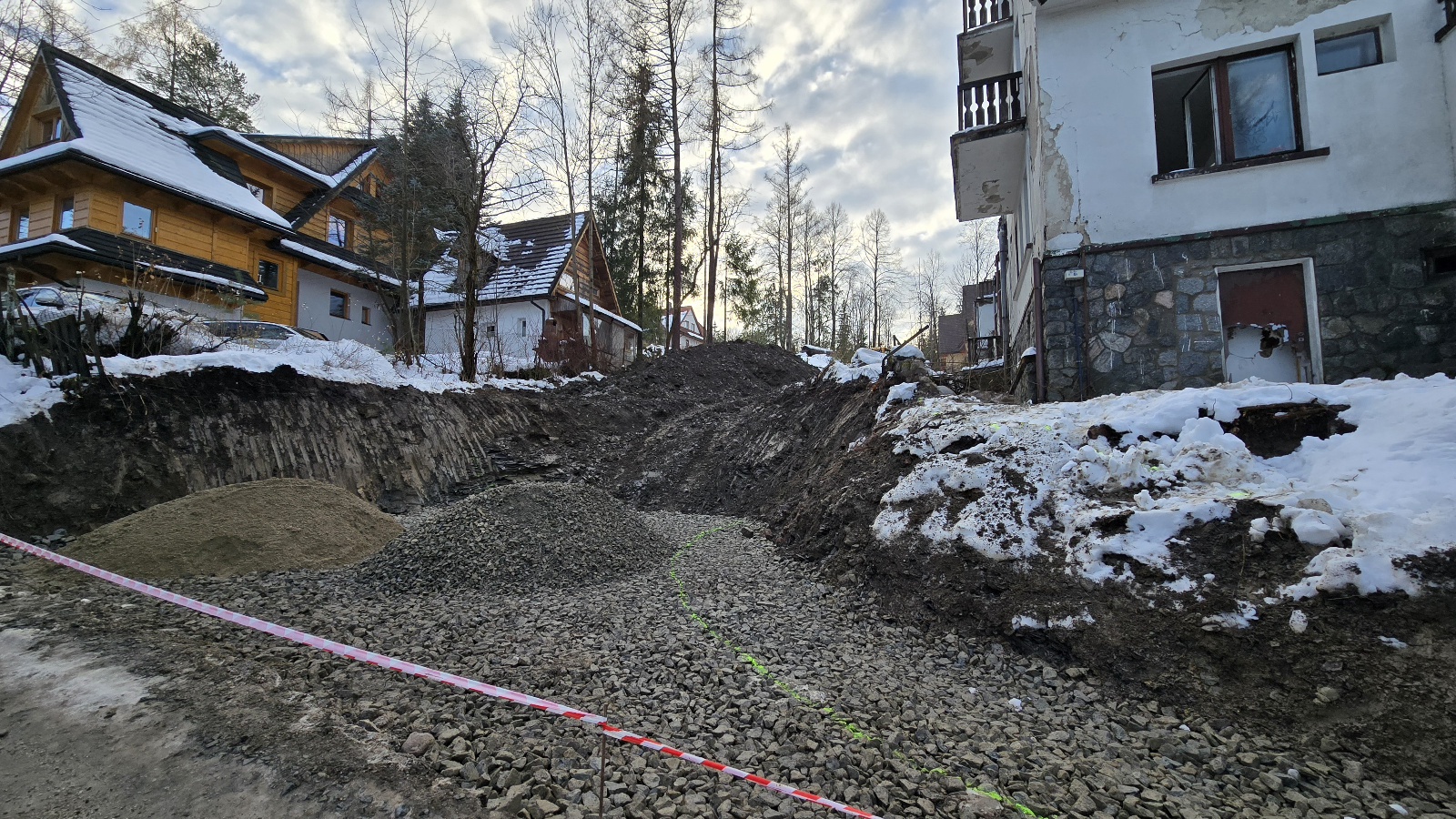 Przy opuszczonym pensjonacie Anna Maria w Zakopanem rozpoczęły się prace przy budowie nowego wjazdu na nieruchomość. Sąsiedzi inwestycji twierdzą, że są one niezabezpieczone, a na drogę dojazdową wylewała się woda, która zamarzała.