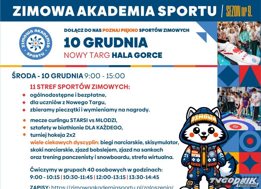 W środę w Nowym Targu z samego rana rozpocznie się Zimowa Akademia Sportu.
