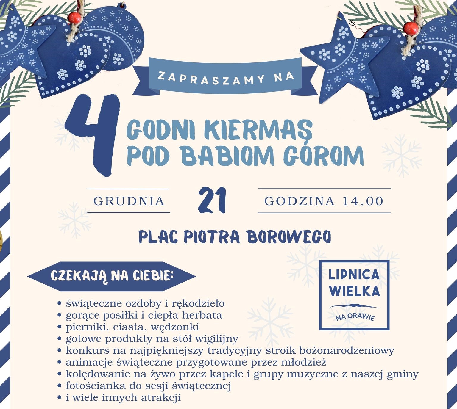 21 grudnia na Placu Piotra Borowego od godz. 14 odbędzie się 4. Godni Kiermas pod Babiom Górom.