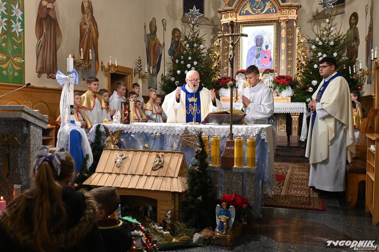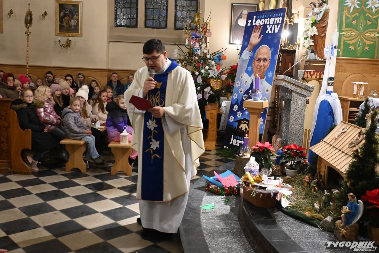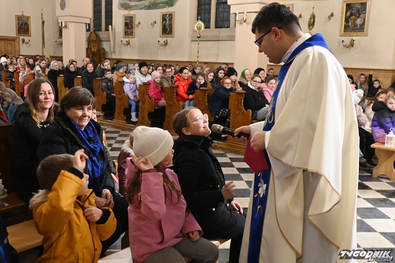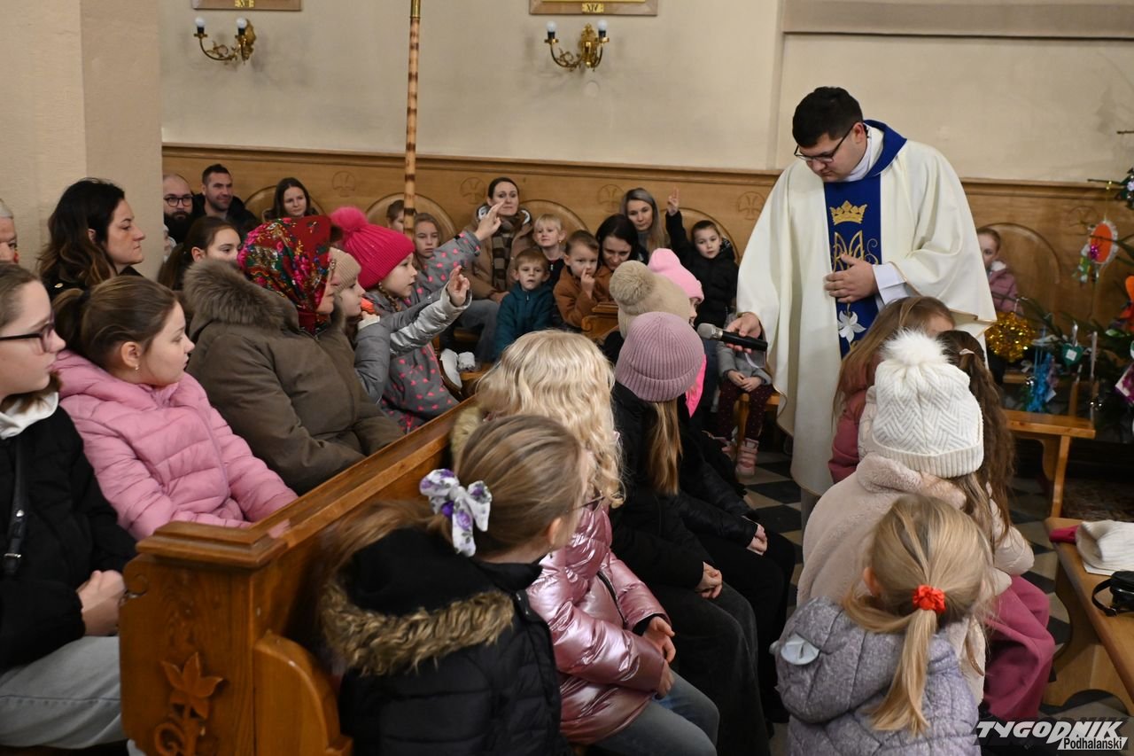 Z kolei ks. wikary Artur Kulak nawiązał do tematu rorat. Przez 4 tygodnie najmłodsi poznawali wraz z "Małym Gościem Niedzielnym" papieża Leona XIV. Kapłan podzielił się też refleksją o Bożym Narodzeniu. - Życzę wam i sobie, byśmy Bożą Dziecinę przyjęli w swoich sercach i by Ona była z nami tam cały rok przez życzliwość do drugiego człowieka, dobroć, pomoc - dodał ks. Kulak.