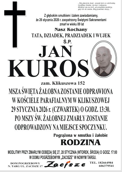 2026-01-26 21:30 Udana akcja krwiodawstwa w Zębie. Zebrano blisko 19 litrów krwi 2026-01-26 21:10 Rekord zbiórki WOŚP w Lipnicy Wielkiej 2026-01-26 21:00 Składka z tacy kościelnej 1 lutego dla Kijowa. Decyzja kard. Grzegorza Rysia 1 2026-01-26 20:39 Zakopane zagrało z WOŚP: ponad 120 tys. zł zebrane przez dwa sztaby 2026-01-26 20:00 Opłata miejscowa wchodzi do aplikacji, a w tle prace nad opłatą turystyczną 2026-01-26 19:32 Padł rekord w schronisku PTTK na Markowych Szczawinach 2026-01-26 19:00 Największe dofinansowanie w historii Zakopanego. We wtorek podpisanie umowy 2 2026-01-26 18:30 Policjant do bólu - po naszym tekście jest śledztwo prokuratury 1 2026-01-26 18:05 Kolejne zamieszanie wokół kadry na Igrzyska Olimpijskie 1 2026-01-26 17:00 Samorządowcy z Zakopanego przeciw debiutowi giełdowemu PKL. Ostatni moment, by reagować 6 2026-01-26 16:00 Policjant miał nosa 1 2026-01-26 15:30 Dolina Chochołowska jednak nie do końca wysprzątana 3 2026-01-26 15:00 Pożar w Lipnicy Małej 2026-01-26 14:16 Z dala od Krupówek. Gdzie na Podhalu i w Małopolsce szukać prawdziwego spokoju w duchu "slow"? 2026-01-26 14:00 Mandaty dla taksówkarzy w Zakopanem i sprawców kolizji w Kościelisku 2026-01-26 13:36 Gdzie będzie Mundial 2026? Miasta, stadiony i najważniejsze informacje 2026-01-26 13:35 Młodzież Kenara w Stacji Kultura 2026-01-26 13:17 Saturatory do wody - czym są i jak działają? 2026-01-26 13:00 Nowy Targ zagrał dla WOŚP 2 2026-01-26 12:30 Portret kolekcjonera. Ferie w Atmie 2026-01-26 12:26 Sieć 11 placówek medycznych i cyfrowa obsługa protetyczna 2026-01-26 12:00 Dwaj kierowcy BMW zatrzymani za prędkość. Jeden prowadził mimo cofniętych uprawnień 1 2026-01-26 11:51 Jak estetycznie zaaranżować przestrzeń przed domem jednorodzinnym? 3 porady, które mogą Ci się przydać! 2026-01-26 11:00 Moc atrakcji podczas ferii w Zakopanem 2026! 2026-01-26 10:00 Parking podziemny na Równi Krupowej? Mieszkańcy i radni mówią nie 10 2026-01-26 09:37 Do sprzedania ZABYTKOWY PRZEDWOJENNY KREDENS GÓRALSKI 2026-01-26 09:00 Ostatnie takty kolędowe z Rodziną Lassaków (ZDJĘCIA, WIDEO) 2026-01-26 08:25 Groźny pożar w Waksmundzie - trzy osoby poszkodowane (WIDEO) 2026-01-26 08:00 W nas jest siła! 100-lecie ZP w Dzianiszu (ZDJĘCIA) 2026-01-25 21:00 Nauka strzyżenia owiec pod okiem fachowca 6 2026-01-25 20:00 Miołek se piscołke... 2026-01-25 19:00 Bezpłatny kurs narciarstwa biegowego dla dorosłych w Nowym Targu 2026-01-25 17:59 W Tatrach halny. Na Kasprowym już ponad 90 km na godz. (WIDEO) 2026-01-25 16:59 Parada Gazdowska w Zębie (ZDJĘCIA, WIDEO) 2 2026-01-25 15:59 Policjanci dbają o bezpieczeństwo uczestników WOŚP 6 2026-01-25 15:03 Budowa apartamentowca w Dolinie Białego ruszy znów pełną parą 20 2026-01-25 14:42 Burza wokół kadry alpejek. Komorowska wycofuje się z występu na IO 2026 1 2026-01-25 13:59 Odwiedzamy zakopiański sztab WOŚP (WIDEO) 12 2026-01-25 13:40 Rabka z Orkiestrą 1 2026-01-25 13:23 Burmistrz Zakopanego wspiera WOŚP i zaprasza na finał do SP nr 5 (WIDEO) 12 2026-01-25 13:00 Góralskie restauracje z włoską duszą. Tadeusz Stopka i jego Kryjówki 3 2026-01-25 12:30 Szalone emocje na Chochołowskiej. Kuba przeszedł sam siebie (Wideo) 3 2026-01-25 12:00 "Pastorałka". Historie przetworzone 2026-01-25 11:00 Trzask łamanej kości (WIDEO) 9 2026-01-25 10:00 Czy dziś mamy niedzielę handlową? 2 2026-01-25 08:59 Kolędowanie z Hanką Rybką (ZDJĘCIA, WIDEO) 5 2026-01-25 08:00 Początek "wielkiego grania". Dziś finał Wielkiej Orkiestry Świątecznej Pomocy (WIDEO) 18 2026-01-24 21:00 Zmiana dowódcy w 21 Brygadzie Strzelców Podhalańskich 2026-01-24 20:00 Sebastian Bryja z Pyzówki z kwalifikacją olimpijską 2026-01-24 19:00 Dopłacają za owce na hali. Małopolska wyda 2 mln zł na wypas kulturowy 2
