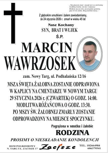 2026-01-26 21:30 Udana akcja krwiodawstwa w Zębie. Zebrano blisko 19 litrów krwi 2026-01-26 21:10 Rekord zbiórki WOŚP w Lipnicy Wielkiej 2026-01-26 21:00 Składka z tacy kościelnej 1 lutego dla Kijowa. Decyzja kard. Grzegorza Rysia 1 2026-01-26 20:39 Zakopane zagrało z WOŚP: ponad 120 tys. zł zebrane przez dwa sztaby 2026-01-26 20:00 Opłata miejscowa wchodzi do aplikacji, a w tle prace nad opłatą turystyczną 2026-01-26 19:32 Padł rekord w schronisku PTTK na Markowych Szczawinach 2026-01-26 19:00 Największe dofinansowanie w historii Zakopanego. We wtorek podpisanie umowy 2 2026-01-26 18:30 Policjant do bólu - po naszym tekście jest śledztwo prokuratury 1 2026-01-26 18:05 Kolejne zamieszanie wokół kadry na Igrzyska Olimpijskie 1 2026-01-26 17:00 Samorządowcy z Zakopanego przeciw debiutowi giełdowemu PKL. Ostatni moment, by reagować 6 2026-01-26 16:00 Policjant miał nosa 1 2026-01-26 15:30 Dolina Chochołowska jednak nie do końca wysprzątana 3 2026-01-26 15:00 Pożar w Lipnicy Małej 2026-01-26 14:16 Z dala od Krupówek. Gdzie na Podhalu i w Małopolsce szukać prawdziwego spokoju w duchu "slow"? 2026-01-26 14:00 Mandaty dla taksówkarzy w Zakopanem i sprawców kolizji w Kościelisku 2026-01-26 13:36 Gdzie będzie Mundial 2026? Miasta, stadiony i najważniejsze informacje 2026-01-26 13:35 Młodzież Kenara w Stacji Kultura 2026-01-26 13:17 Saturatory do wody - czym są i jak działają? 2026-01-26 13:00 Nowy Targ zagrał dla WOŚP 2 2026-01-26 12:30 Portret kolekcjonera. Ferie w Atmie 2026-01-26 12:26 Sieć 11 placówek medycznych i cyfrowa obsługa protetyczna 2026-01-26 12:00 Dwaj kierowcy BMW zatrzymani za prędkość. Jeden prowadził mimo cofniętych uprawnień 1 2026-01-26 11:51 Jak estetycznie zaaranżować przestrzeń przed domem jednorodzinnym? 3 porady, które mogą Ci się przydać! 2026-01-26 11:00 Moc atrakcji podczas ferii w Zakopanem 2026! 2026-01-26 10:00 Parking podziemny na Równi Krupowej? Mieszkańcy i radni mówią nie 10 2026-01-26 09:37 Do sprzedania ZABYTKOWY PRZEDWOJENNY KREDENS GÓRALSKI 2026-01-26 09:00 Ostatnie takty kolędowe z Rodziną Lassaków (ZDJĘCIA, WIDEO) 2026-01-26 08:25 Groźny pożar w Waksmundzie - trzy osoby poszkodowane (WIDEO) 2026-01-26 08:00 W nas jest siła! 100-lecie ZP w Dzianiszu (ZDJĘCIA) 2026-01-25 21:00 Nauka strzyżenia owiec pod okiem fachowca 6 2026-01-25 20:00 Miołek se piscołke... 2026-01-25 19:00 Bezpłatny kurs narciarstwa biegowego dla dorosłych w Nowym Targu 2026-01-25 17:59 W Tatrach halny. Na Kasprowym już ponad 90 km na godz. (WIDEO) 2026-01-25 16:59 Parada Gazdowska w Zębie (ZDJĘCIA, WIDEO) 2 2026-01-25 15:59 Policjanci dbają o bezpieczeństwo uczestników WOŚP 6 2026-01-25 15:03 Budowa apartamentowca w Dolinie Białego ruszy znów pełną parą 20 2026-01-25 14:42 Burza wokół kadry alpejek. Komorowska wycofuje się z występu na IO 2026 1 2026-01-25 13:59 Odwiedzamy zakopiański sztab WOŚP (WIDEO) 12 2026-01-25 13:40 Rabka z Orkiestrą 1 2026-01-25 13:23 Burmistrz Zakopanego wspiera WOŚP i zaprasza na finał do SP nr 5 (WIDEO) 12 2026-01-25 13:00 Góralskie restauracje z włoską duszą. Tadeusz Stopka i jego Kryjówki 3 2026-01-25 12:30 Szalone emocje na Chochołowskiej. Kuba przeszedł sam siebie (Wideo) 3 2026-01-25 12:00 "Pastorałka". Historie przetworzone 2026-01-25 11:00 Trzask łamanej kości (WIDEO) 9 2026-01-25 10:00 Czy dziś mamy niedzielę handlową? 2 2026-01-25 08:59 Kolędowanie z Hanką Rybką (ZDJĘCIA, WIDEO) 5 2026-01-25 08:00 Początek "wielkiego grania". Dziś finał Wielkiej Orkiestry Świątecznej Pomocy (WIDEO) 18 2026-01-24 21:00 Zmiana dowódcy w 21 Brygadzie Strzelców Podhalańskich 2026-01-24 20:00 Sebastian Bryja z Pyzówki z kwalifikacją olimpijską 2026-01-24 19:00 Dopłacają za owce na hali. Małopolska wyda 2 mln zł na wypas kulturowy 2