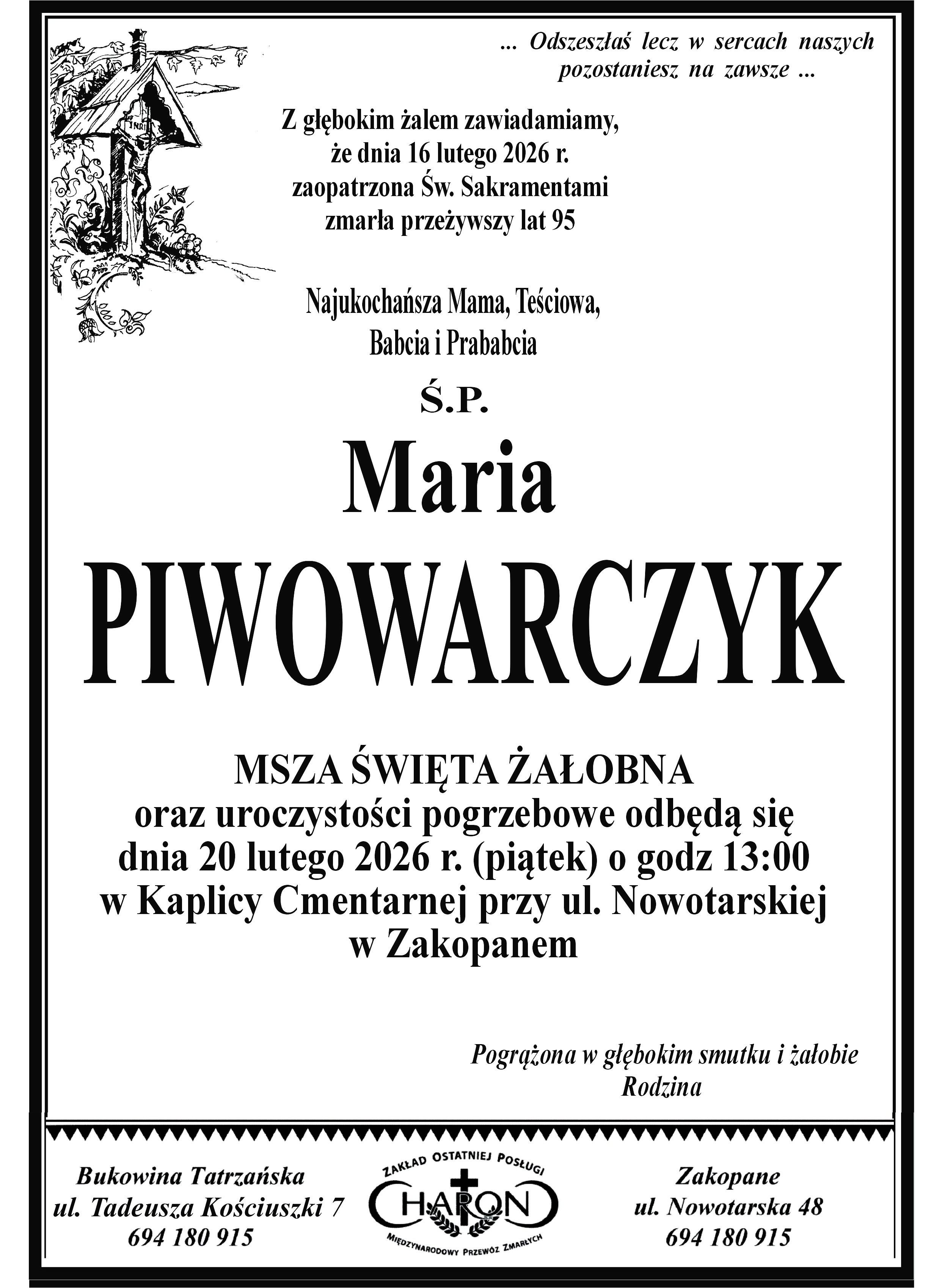 2026-02-17 22:57 Zaginął 35-letni Łukasz Biernat 2026-02-17 22:51 Lepietnica Klikuszowa Halowym Mistrzem Podhala 2026-02-17 21:02 Chabówka bez mostu 2026-02-17 20:00 Jarmuta Szczawnica halowym mistrzem 2026-02-17 19:31 Bezpiecznie na stoku 2026-02-17 19:00 Zdrój nie wierzy... wieży 1 2026-02-17 18:30 "Zapiski oficera Armii Czerwonej". Piotr Cyrwus w Ludźmierzu 6 2026-02-17 18:00 Dzień Służby Cywilnej. Podziękowania dla pracowników Komendy Powiatowej Policji 2026-02-17 17:30 Kłamstwa odbijają się głośnym echem. Mamy dla Was książki 2026-02-17 17:09 Interwencja strażaków w Poroninie 2026-02-17 16:59 Jeden remont dwóch wykonawców 2026-02-17 16:30 Dźwięki Orawy. Widowisko muzyczno-teatralne 2026-02-17 16:00 Z Gronkowa do Watykanu - droga księdza Władysława 2026-02-17 15:56 Jak wybrać bezpieczny i rozwijający wyjazd dla dziecka? 2026-02-17 15:02 Senioriada już się zbliża 2 2026-02-17 14:08 Ku przestrodze! Tak wyglądał zjazd szlakiem na Rysy (WIDEO) 4 2026-02-17 14:00 Zabójca przed sądem 1 2026-02-17 13:30 Trwają zapisy do tegorocznej edycji Pucharu Misia Stramusia 2026-02-17 13:00 W środę ma ruszyć wyciąg na Goryczkowej 2026-02-17 12:02 Przekręcony znak może wprowadzać kierowców w błąd 5 2026-02-17 12:00 Strategiczna burza mózgów, widoki na Zakopane 2037 13 2026-02-17 11:25 Rabczańskie planowanie 2 2026-02-17 10:42 Zdarzenie na Olczy mogło mieć zupełnie inny przebieg 1 2026-02-17 10:30 Zimowe ferie w rytmie disco w nowotarskiej bibliotece 2026-02-17 10:30 Obrazy światłem malowane. Wernisaż w Jatkach 2026-02-17 09:37 Tragiczny wypadek polskiego autokaru na Słowacji 1 2026-02-17 09:02 Światowy Dzień Kota - czas, by pokazać naszych czworonożnych towarzyszy 11 2026-02-17 09:02 Bezpieczeństwo usług finansowych online - jak nie dać się oszukać 2026-02-17 08:00 Karmiąca niedźwiedzica została zastrzelona na Słowacji 4 2026-02-16 22:06 Turystka uniknęła śmierci. Spadła z nawisem śnieżnym kilkaset metrów 3 2026-02-16 21:24 Rekord trzeciego Balu Charytatywnego nie został pobity 7 2026-02-16 21:07 Oni są niesamowici. Srebrny medal naszych skoczków! 2 2026-02-16 21:00 Europejska elita Big Air wraca do Białki Tatrzańskiej. Przed nami Garmin Winter Sports Festival 2026 2026-02-16 19:58 Atak nożownika na Olczy. Trwają poszukiwania sprawcy AKTUALIZACJA 6 2026-02-16 19:37 Wzrosło zagrożenie lawinowe w Tatrach 2026-02-16 19:25 Interwencja służb na Olczy. Policja nie udziela informacji 1 2026-02-16 18:59 Warianty budowy zakopianki między Krakowem, a Myślenicami będą opracowywane przez centralę GDDKiA 1 2026-02-16 18:30 Tutaj, poza czas. Spotkajmy się na wystawie 1 2026-02-16 18:00 Udana akcja, dzięki krwiodawcom zebrano ponad 14 litrów krwi 2026-02-16 17:30 Dziękujemy za wolność - piękny medal dla pięknych ludzi 11 2026-02-16 17:01 Objawy hipotermii i odmrożenia palców u rąk. Znamy szczegóły niedzielnych wypraw ratunkowych GOPR na Babiej Górze 1 2026-02-16 16:15 TOPR nie prowadził akcji lawinowej pod Rysami 2026-02-16 15:00 Poranek z silnym mrozem, tak było na Ścieżce pod Reglami (WIDEO) 2026-02-16 14:00 Świeży sztruks kusi na Chotarzu, trasy biegowe znów czynne po chwilowej odwilży 2 2026-02-16 13:29 Lawina w rejonie Rysów 2 2026-02-16 13:00 Pożar samochodu w Kościelisku 2026-02-16 12:01 Znamy szczegóły akcji poszukiwawczej w rejonie Orlej Perci, która zakończyła się tragicznie 1 2026-02-16 11:01 Pusto w Kuźnicach. Kolejki do kolejki brak 2 2026-02-16 10:00 Maruszyna. Podziękowanie dla druha Kowalczyka 1 2026-02-16 09:00 Turyści stracili orientację 1