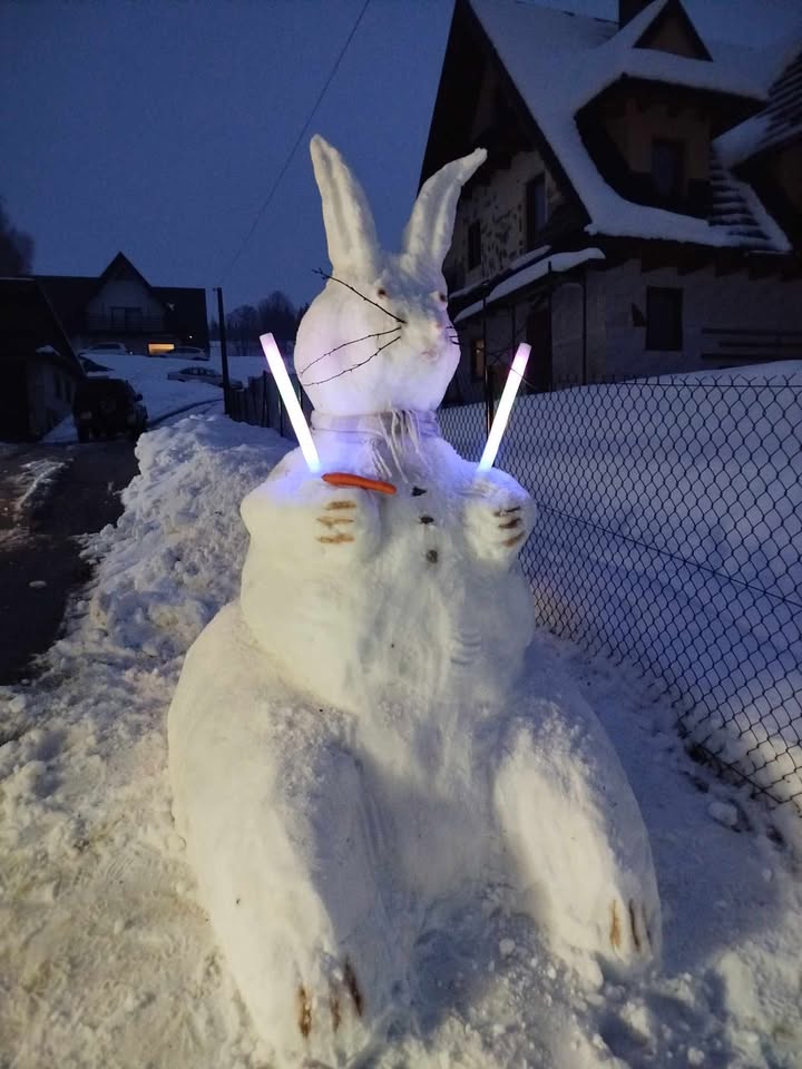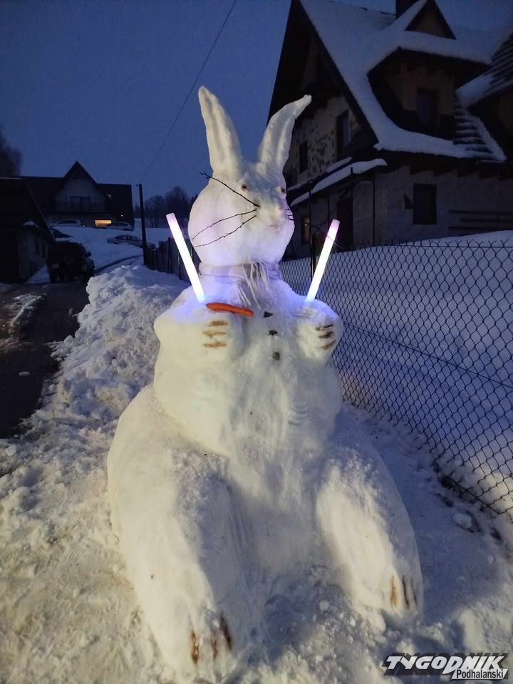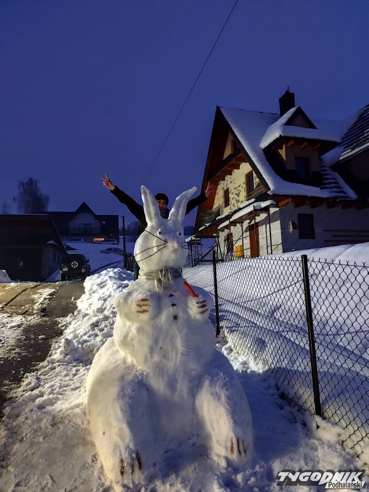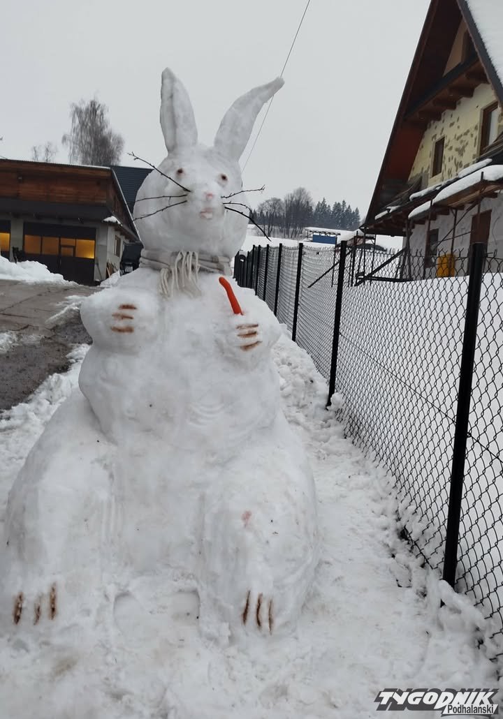 Pogoda z nadmiarem ciężkiego, lepkiego śniegu sprzyja miłośnikom zabawy na świeżym powietrzu, a nagromadzony materiał kusi, by stworzyć z niego nietypowego bałwana.
